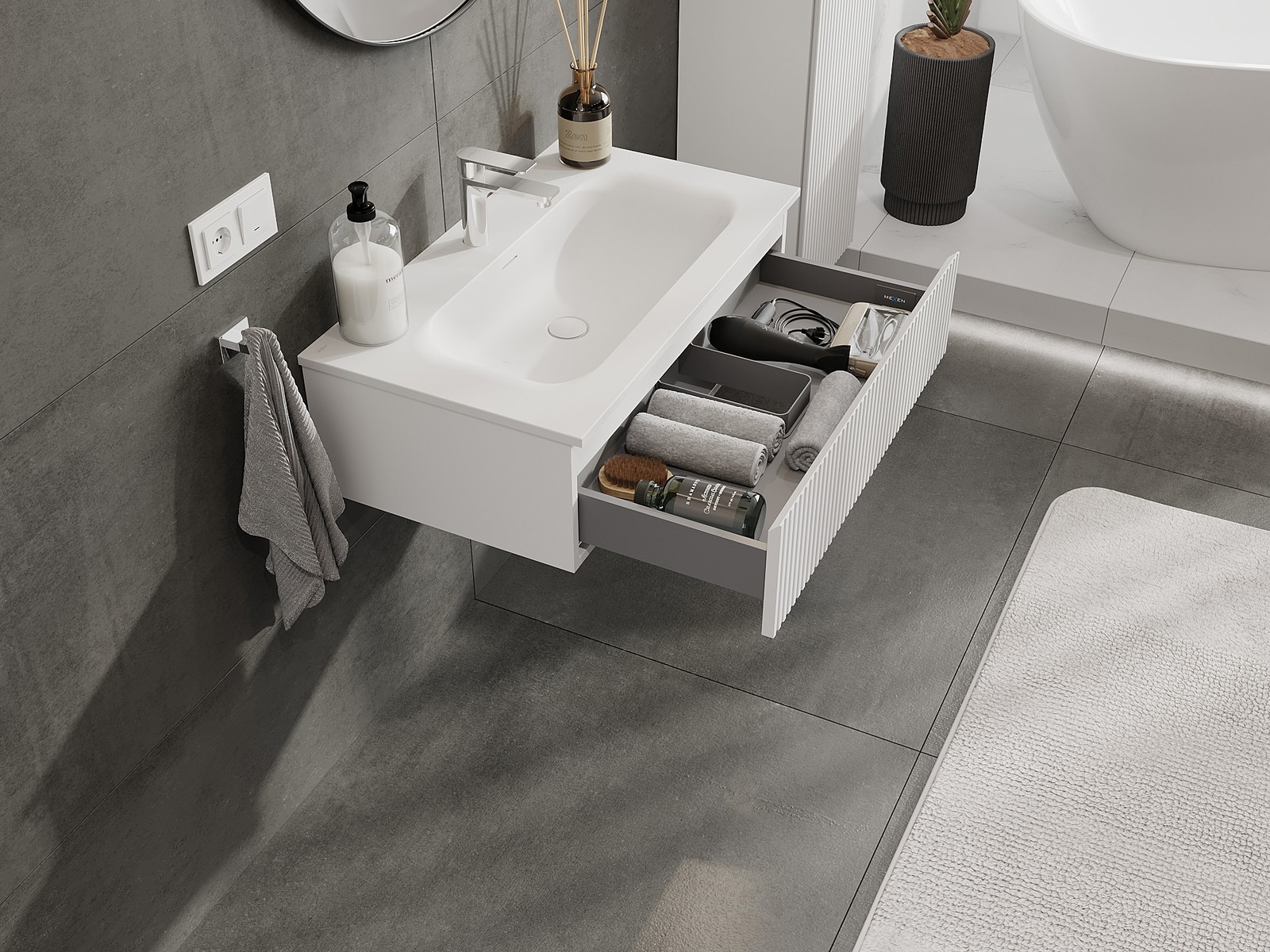 The cabinet carcass is delivered fully assembled, which means maximum convenience and time savings. You don't have to spend hours assembling the furniture – just install it in your chosen spot in the bathroom. This is an ideal solution for those who appreciate quick assembly and immediate results.