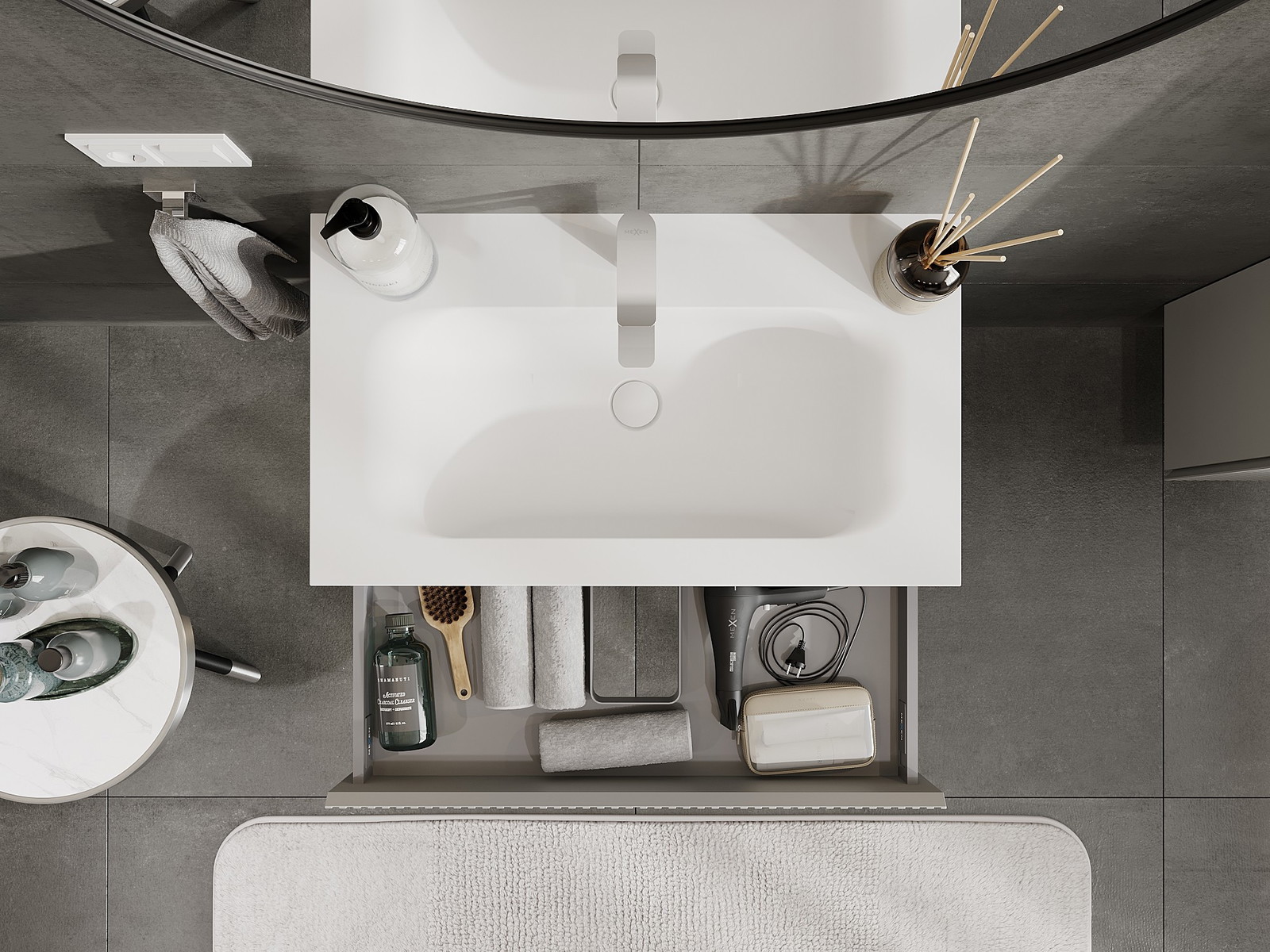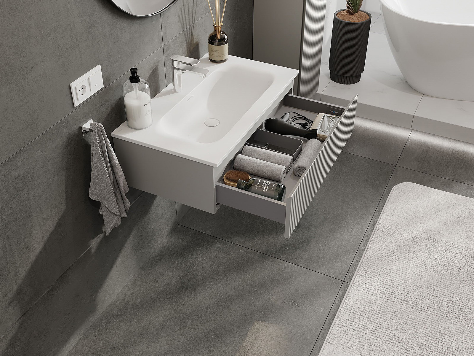 Our modular bathroom furniture can be combined in various colour configurations, allowing for complete personalisation. You can choose both the appearance and functions of individual elements, enabling you to adapt the furniture to your own stylistic and functional preferences.