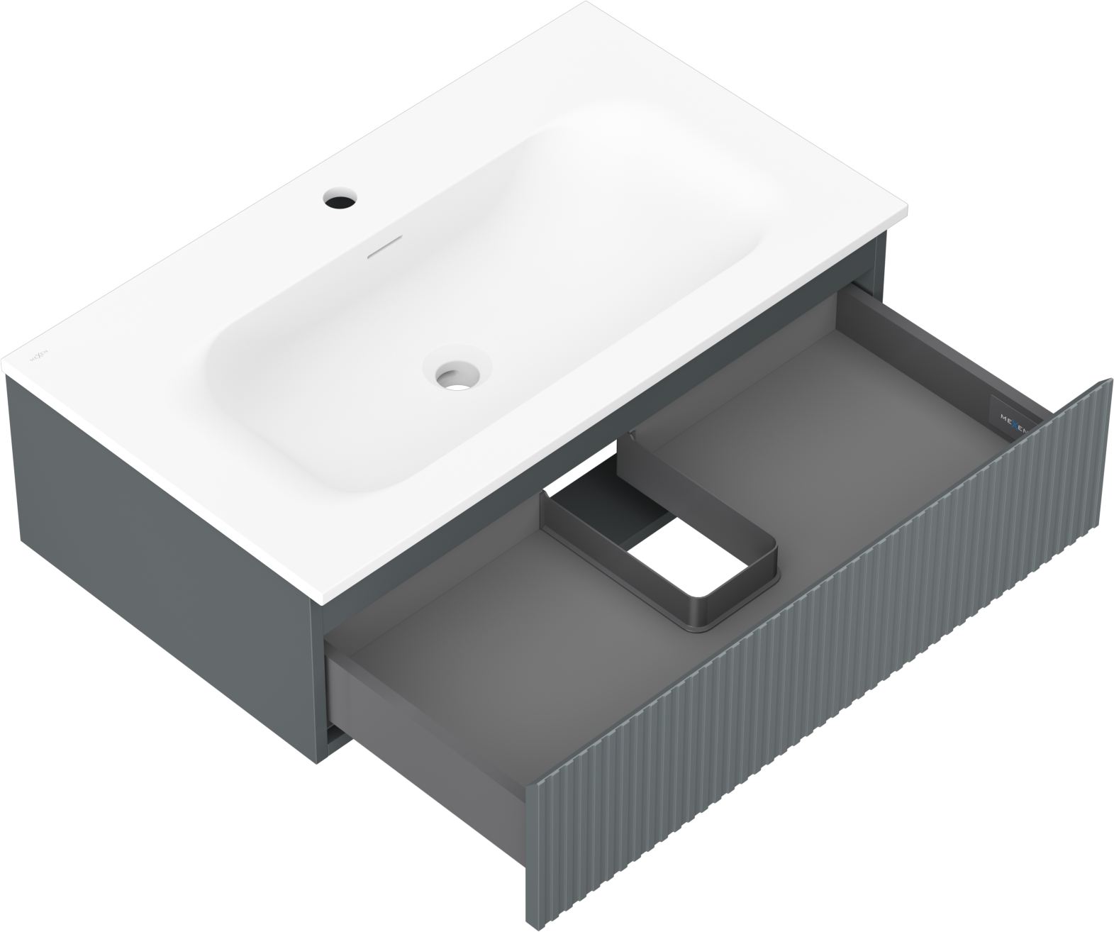 The cutout in the drawer is designed in such a way as to accommodate the siphon, which is essential in sink installations. This allows the furniture to be fully functional without having to give up drawer space for the installation.
