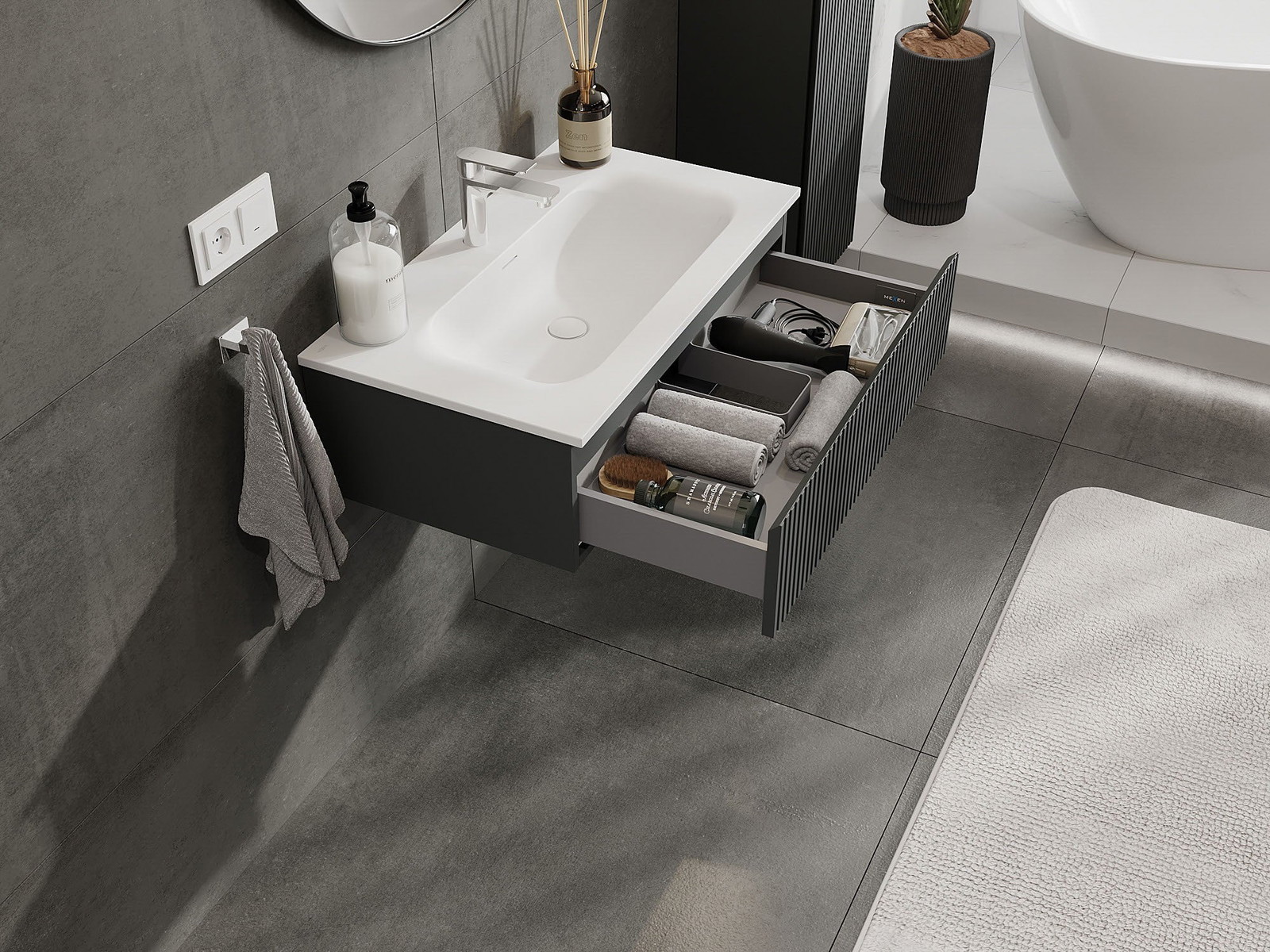 Our modular bathroom furniture can be combined in various colour configurations, allowing for complete personalisation. You can choose both the appearance and functions of individual elements, enabling you to adapt the furniture to your own stylistic and functional preferences.