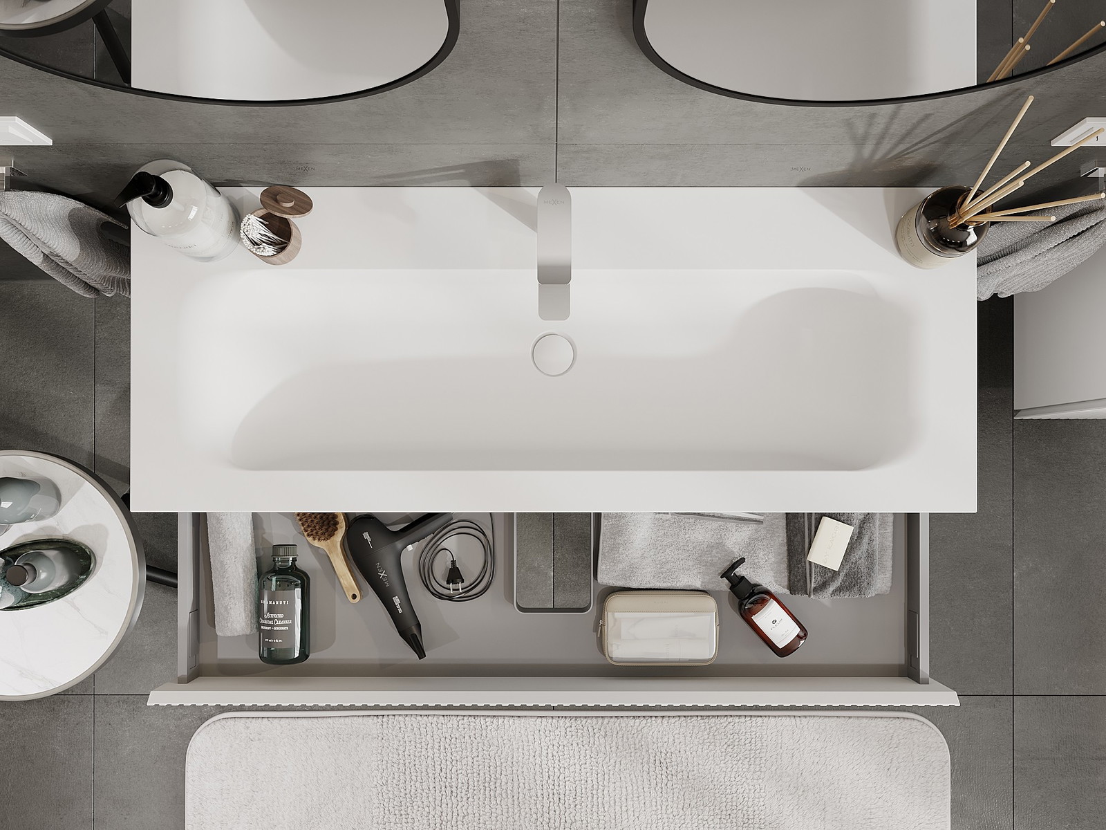 Our modular bathroom furniture can be combined in various colour configurations, allowing for complete personalisation. You can choose both the appearance and functions of individual elements, enabling you to adapt the furniture to your own stylistic and functional preferences.