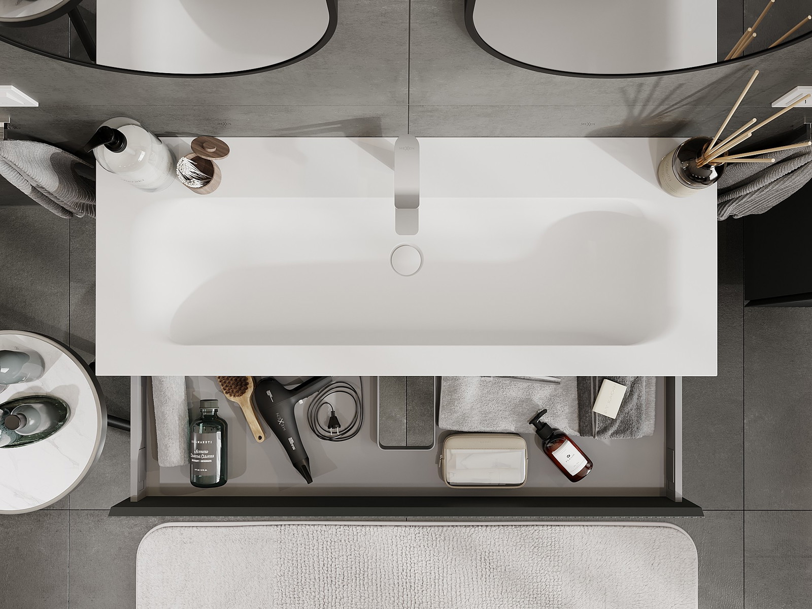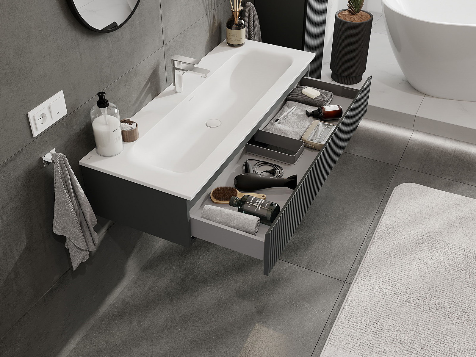 Our modular bathroom furniture can be combined in various colour configurations, allowing for complete personalisation. You can choose both the appearance and functions of individual elements, enabling you to adapt the furniture to your own stylistic and functional preferences.