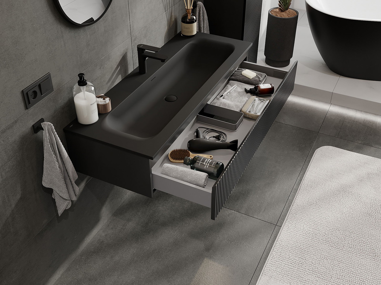 Our modular bathroom furniture can be combined in various colour configurations, allowing for complete personalisation. You can choose both the appearance and functions of individual elements, enabling you to adapt the furniture to your own stylistic and functional preferences.