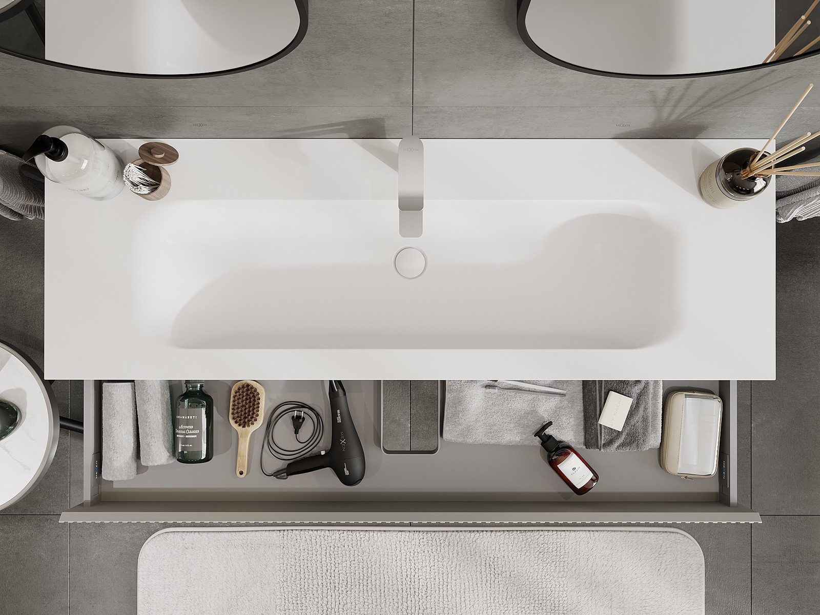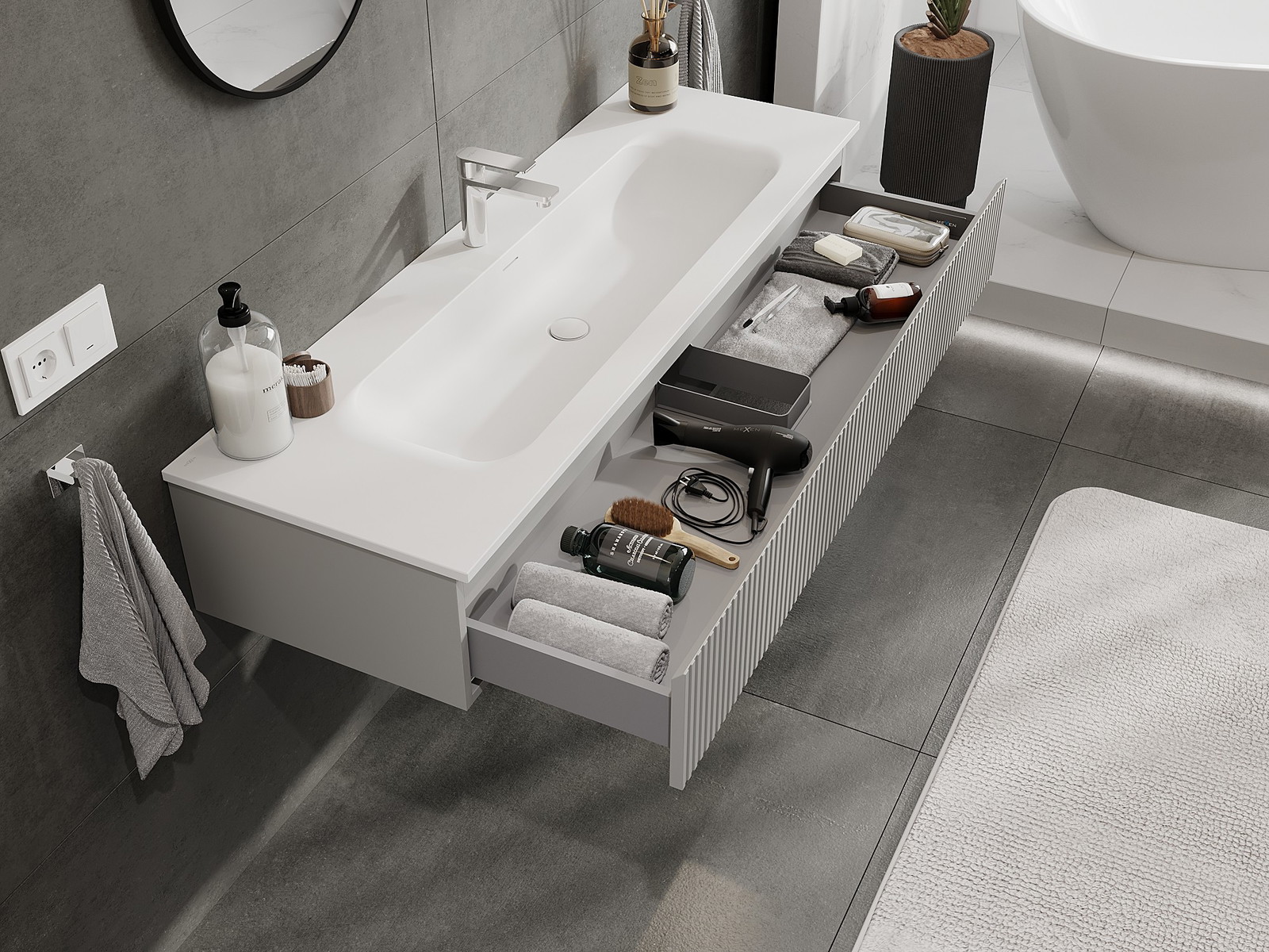 Our modular bathroom furniture can be combined in various colour configurations, allowing for complete personalisation. You can choose both the appearance and functions of individual elements, enabling you to adapt the furniture to your own stylistic and functional preferences.