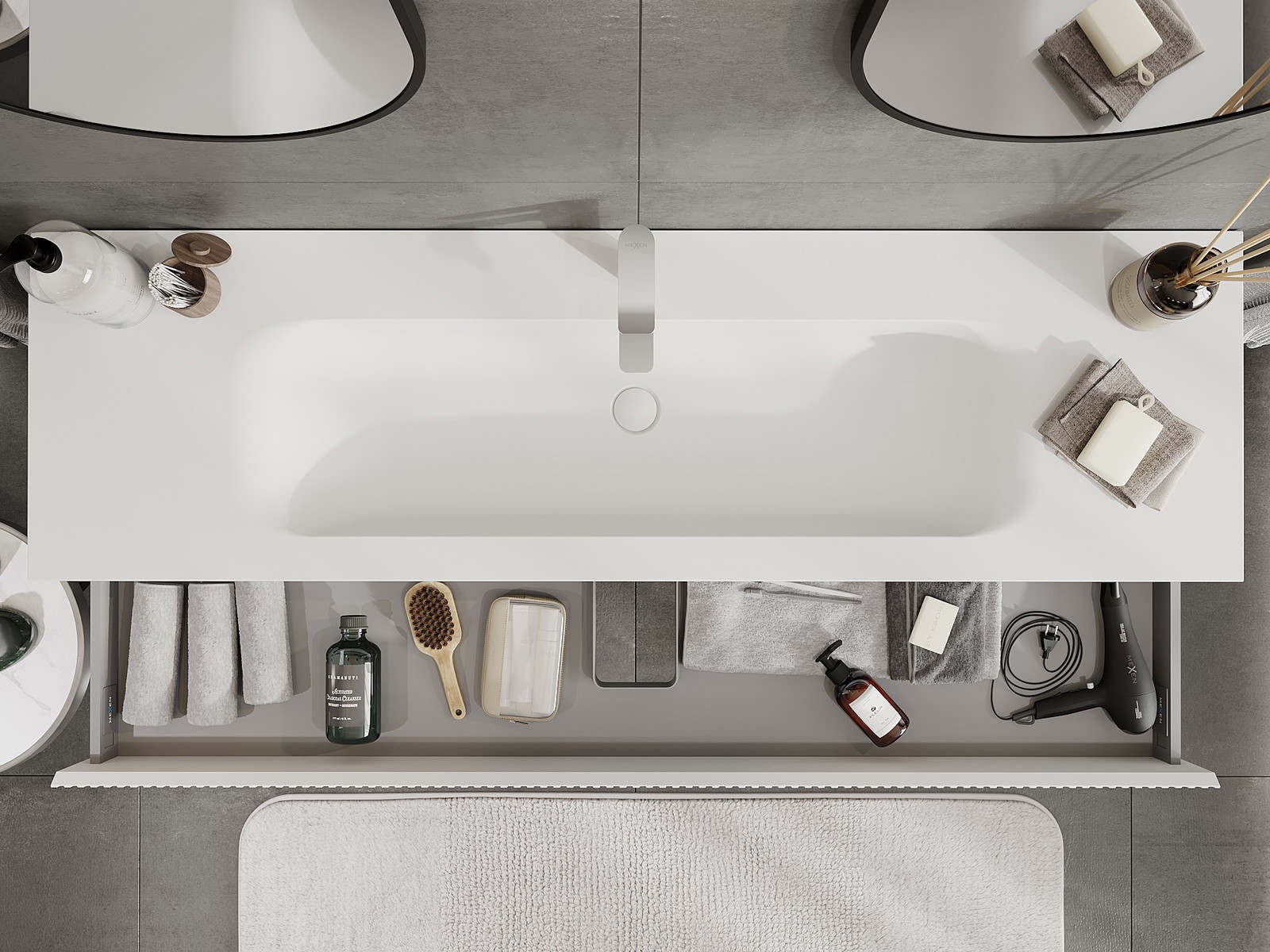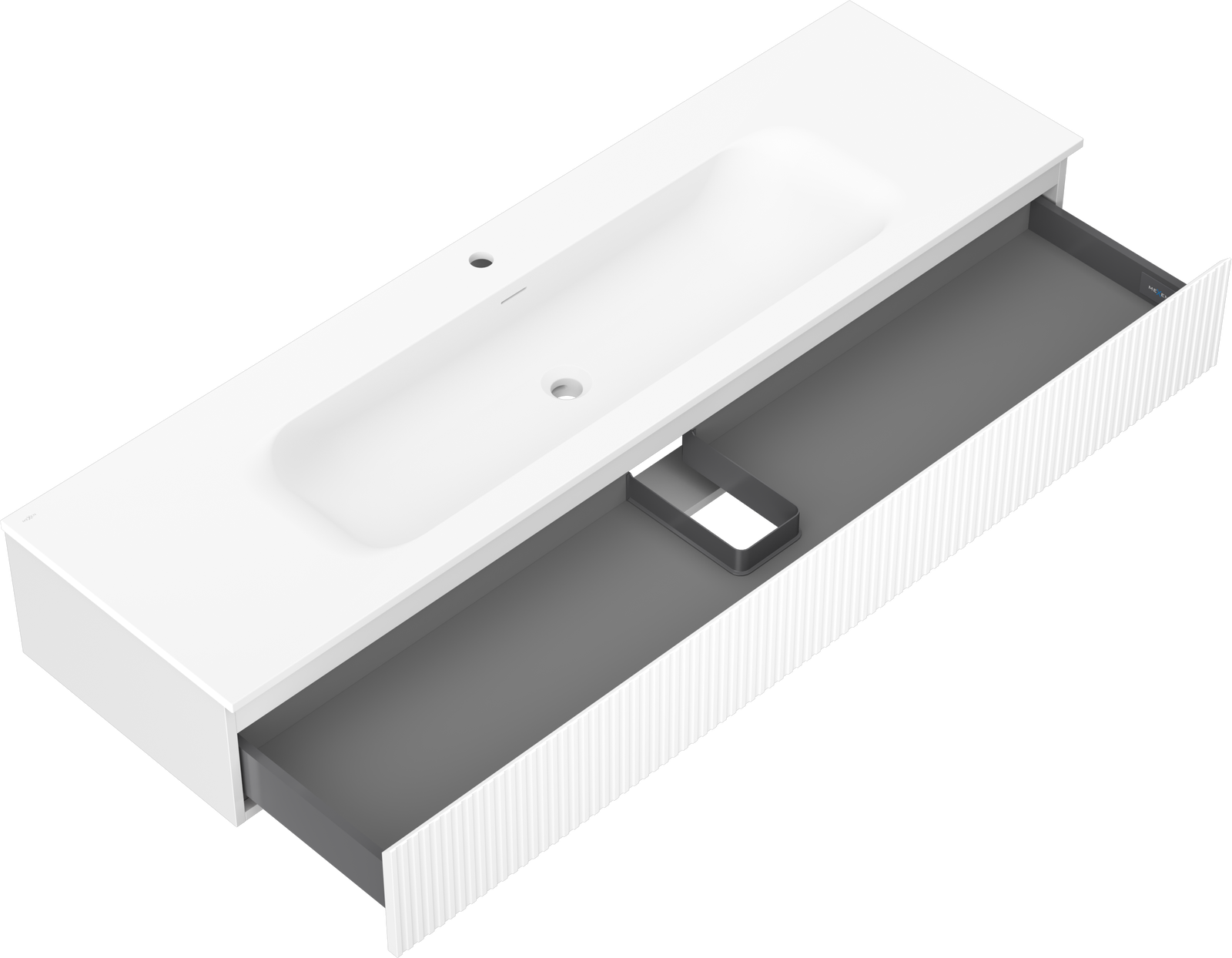 The cutout in the drawer is designed in such a way as to accommodate the siphon, which is essential in sink installations. This allows the furniture to be fully functional without having to give up drawer space for the installation.