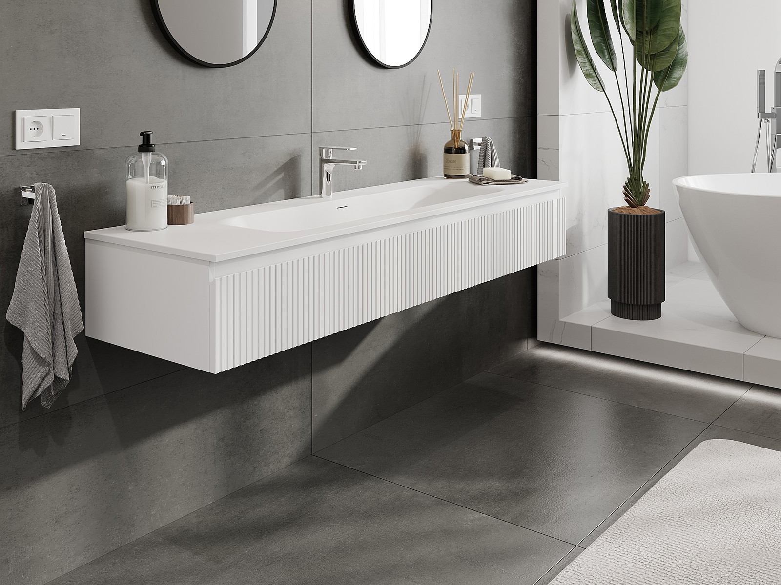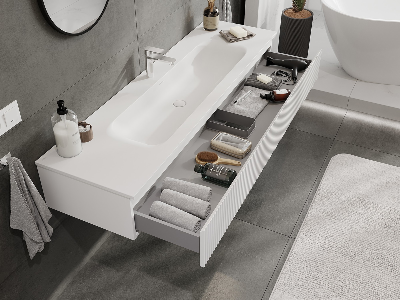Our modular bathroom furniture can be combined in various colour configurations, allowing for complete personalisation. You can choose both the appearance and functions of individual elements, enabling you to adapt the furniture to your own stylistic and functional preferences.