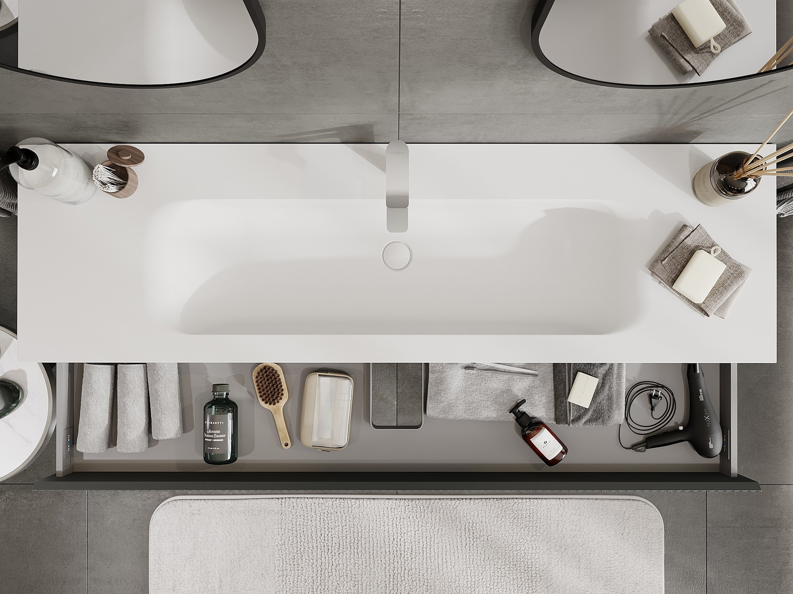 The cutout in the drawer is designed in such a way as to accommodate the siphon, which is essential in sink installations. This allows the furniture to be fully functional without having to give up drawer space for the installation.