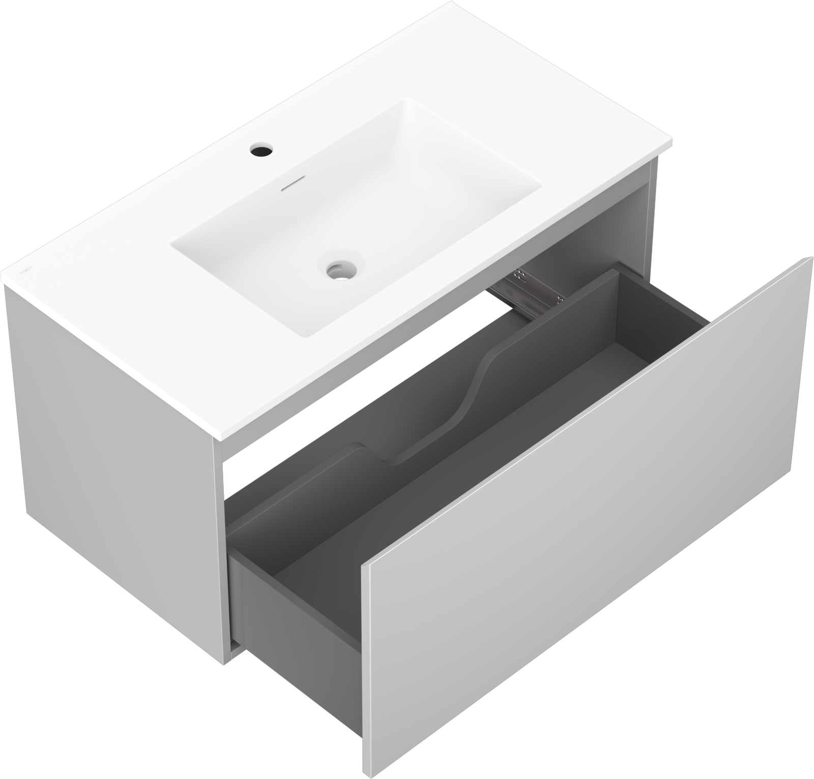 The cutout in the drawer is designed in such a way as to accommodate the siphon, which is essential in sink installations. This allows the furniture to be fully functional without having to give up drawer space for the installation.