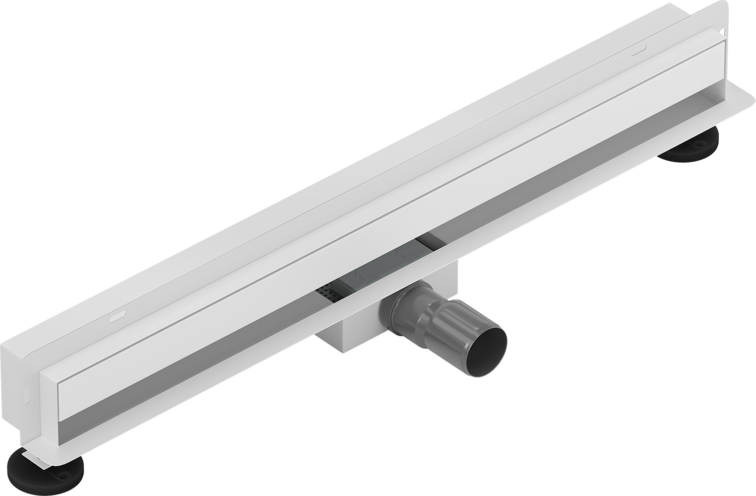 The linear drain is mounted at a depth of only 52 mm. The shallow depth allows for easier preparation of the surface for the drain installation and easy leveling, ensuring high aesthetics and effective water drainage.