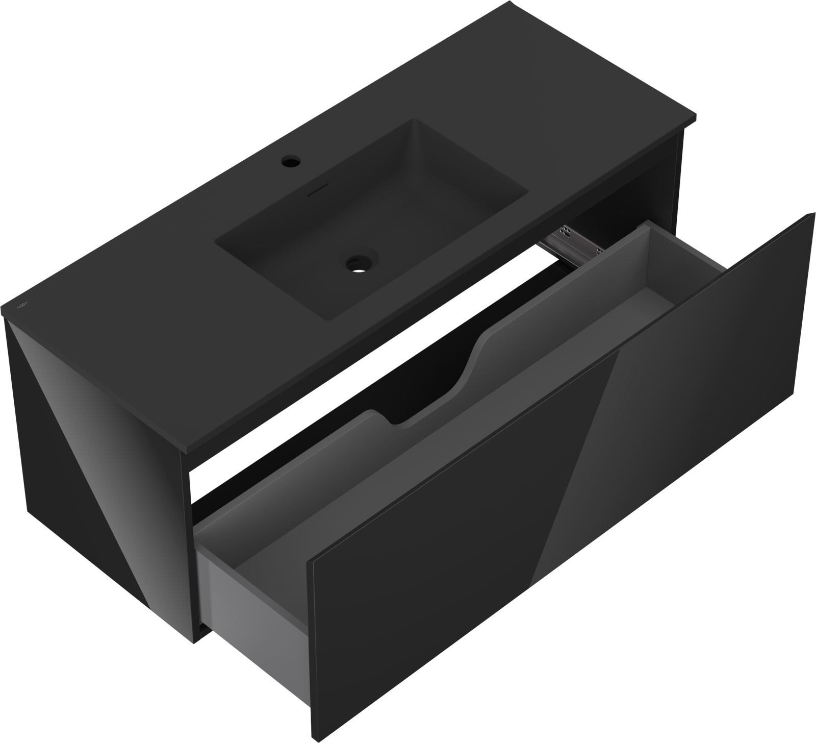 Mexen Orio bathroom cabinet 120 cm with Otis washbasin, 1 drawer, black gloss/black matt - 91A10-12047-1-BF70-W18M71