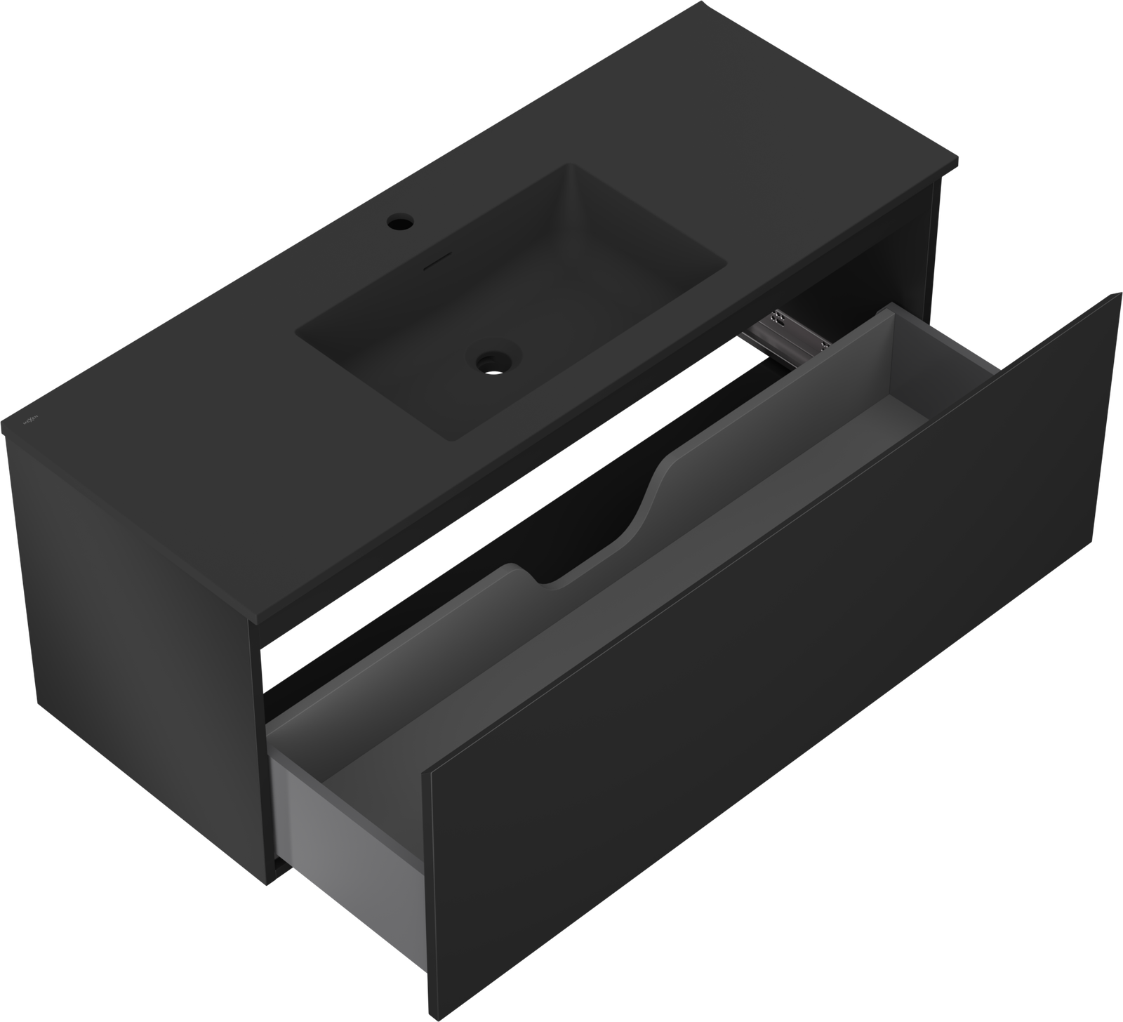 The cutout in the drawer is designed in such a way as to accommodate the siphon, which is essential in sink installations. This allows the furniture to be fully functional without having to give up drawer space for the installation.