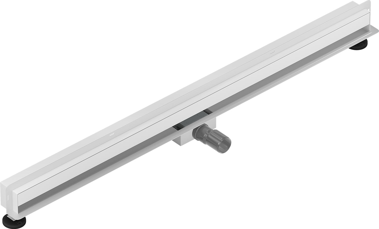 The linear drain is mounted at a depth of only 52 mm. The shallow depth allows for easier preparation of the surface for the drain installation and easy leveling, ensuring high aesthetics and effective water drainage.