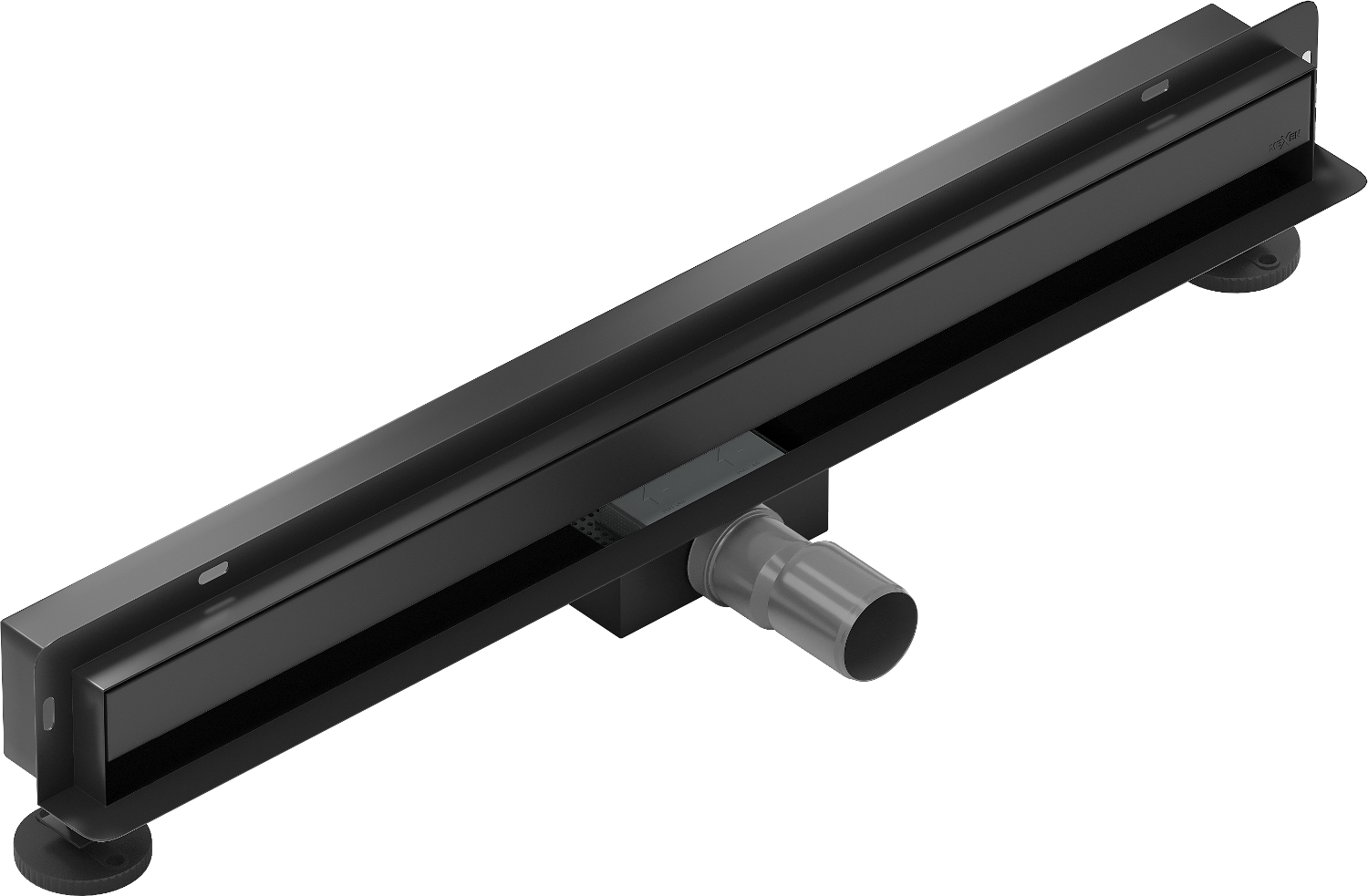 The linear drain is mounted at a depth of only 52 mm. The shallow depth allows for easier preparation of the surface for the drain installation and easy leveling, ensuring high aesthetics and effective water drainage.
