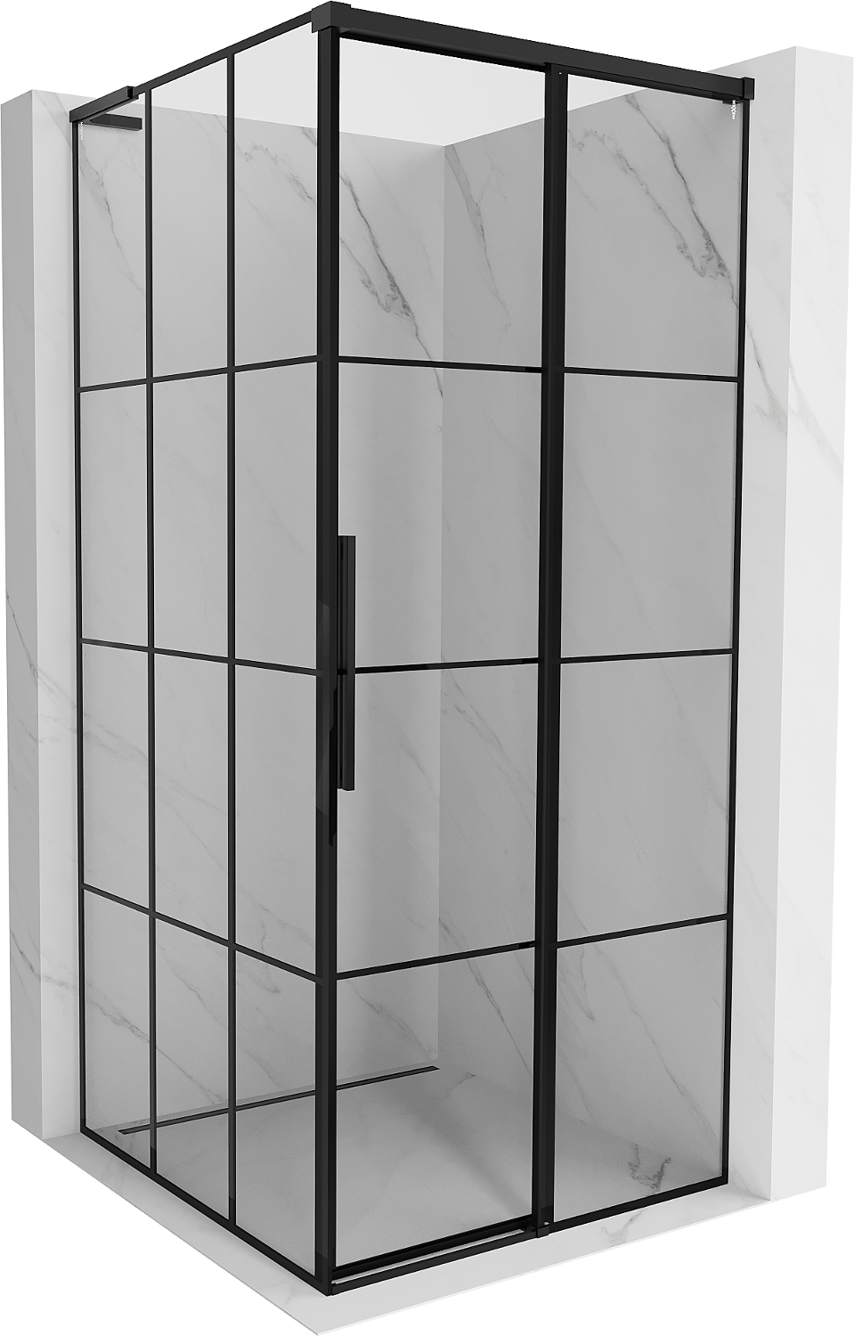 Mexen Rox L Sliding Shower Enclosure Right 100 x 100 cm, Black Lattice, Black - 8C2L-100-100-70-77-P