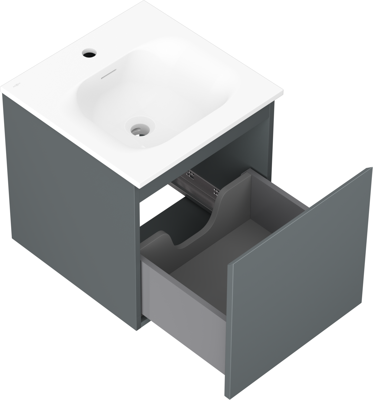 The cut-out in the drawer is designed to accommodate a siphon, which is essential for washbasin installations. This allows the furniture to be installed fully functionally, without having to sacrifice drawer space for the installation.