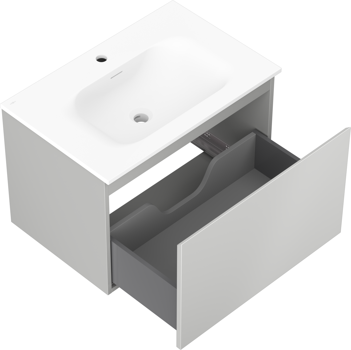 The cutout in the drawer is designed in such a way as to accommodate the siphon, which is essential in sink installations. This allows the furniture to be fully functional without having to give up drawer space for the installation.