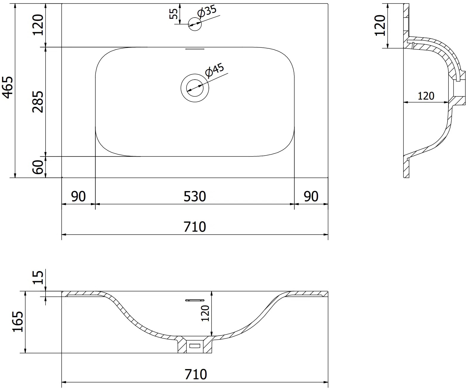 The washbasin has an opening where we can install a tap. This allows for saving valuable space in the bathroom and enhances its aesthetics. This solution also makes it easier to maintain cleanliness around the washbasin.