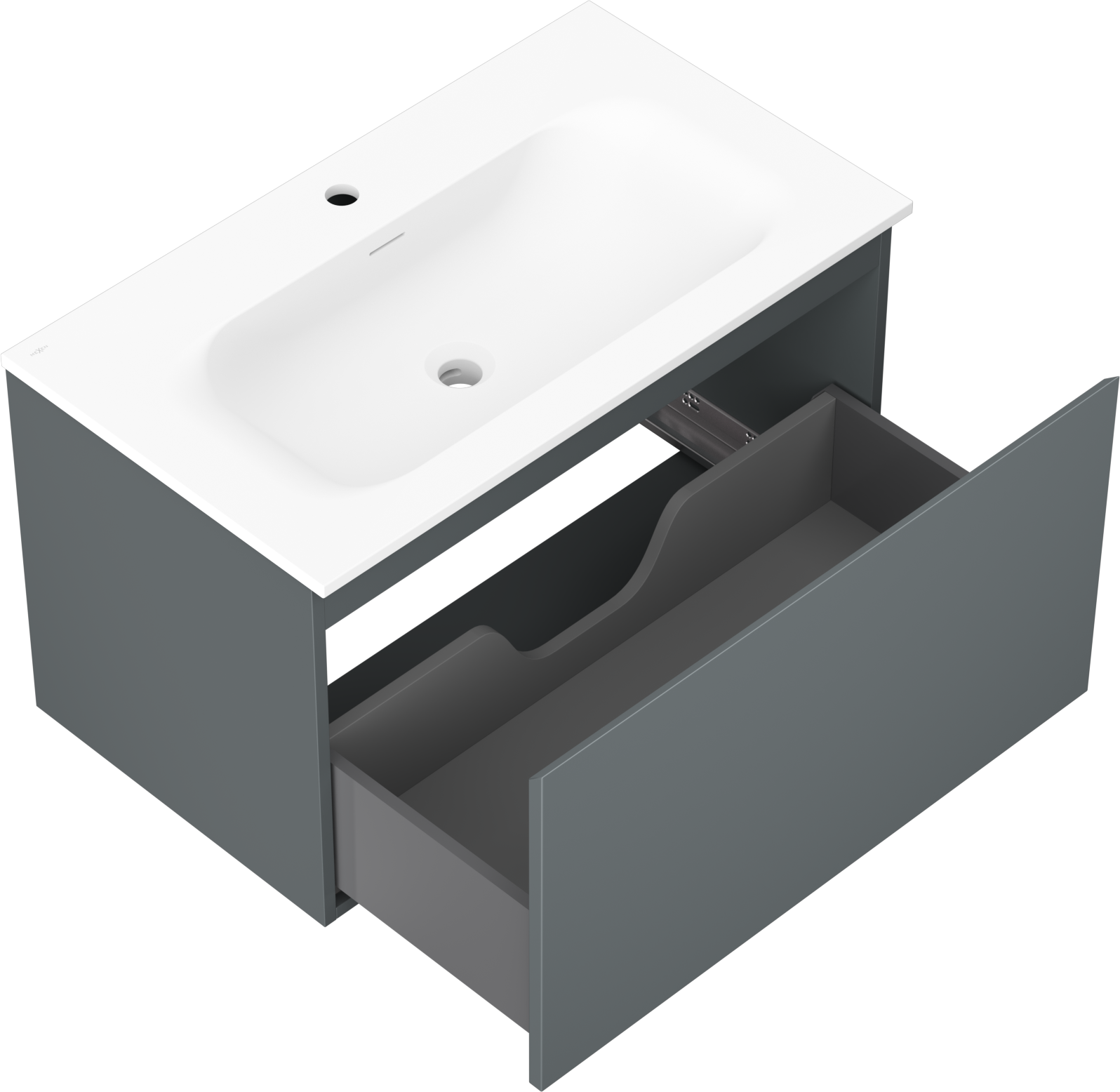 The cutout in the drawer is designed in such a way as to accommodate the siphon, which is essential in sink installations. This allows the furniture to be fully functional without having to give up drawer space for the installation.