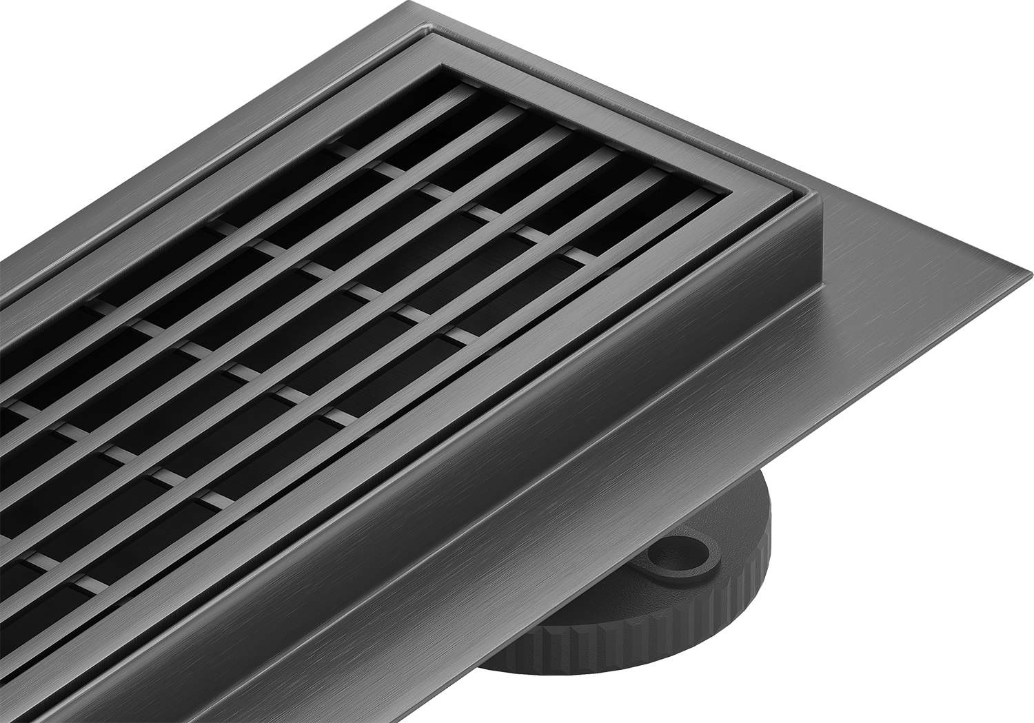 The linear drain is mounted at a depth of only 52 mm. The shallow depth allows for easier preparation of the surface for the drain installation and easy leveling, ensuring high aesthetics and effective water drainage.