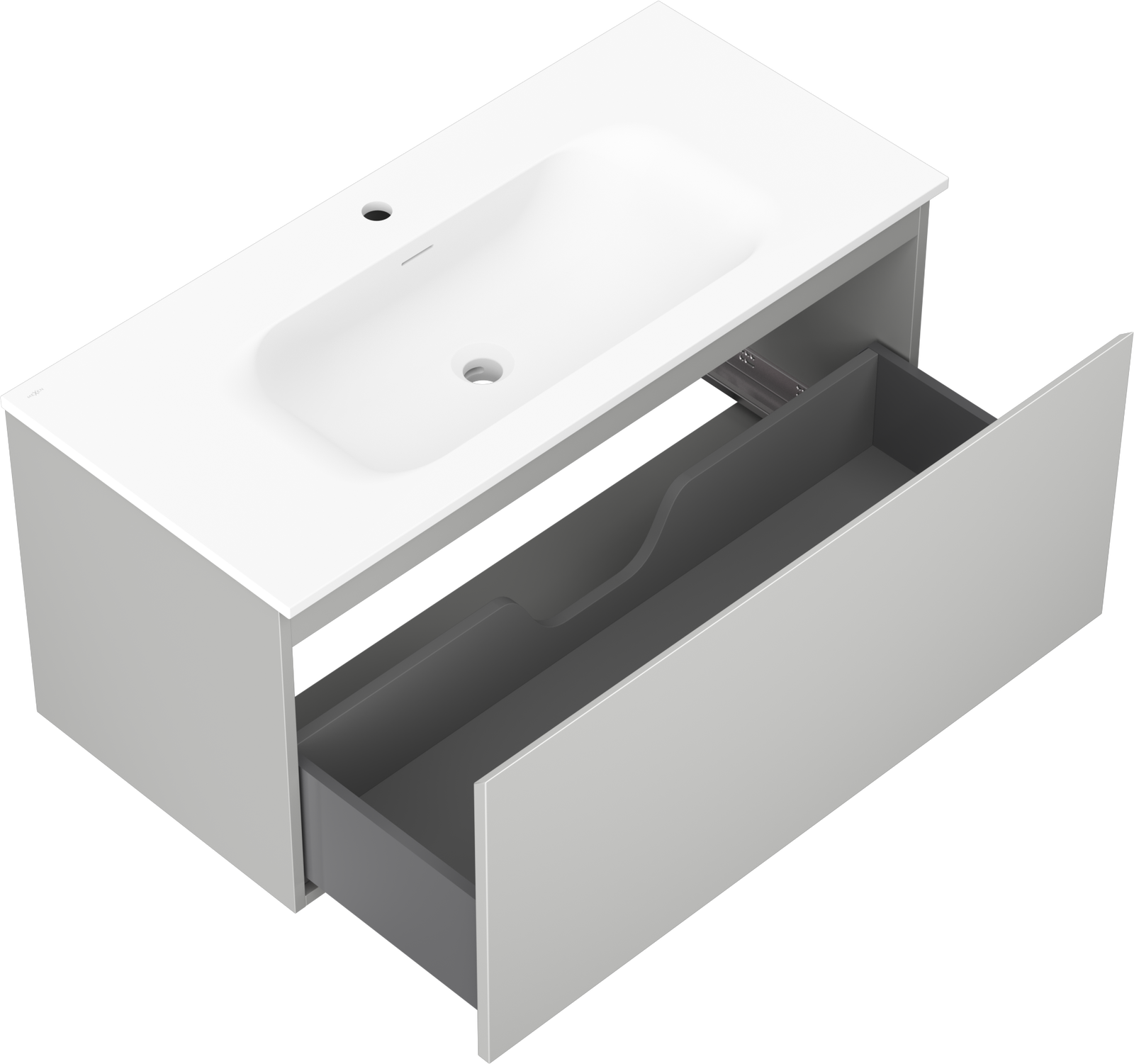 The cutout in the drawer is designed in such a way as to accommodate the siphon, which is essential in sink installations. This allows the furniture to be fully functional without having to give up drawer space for the installation.