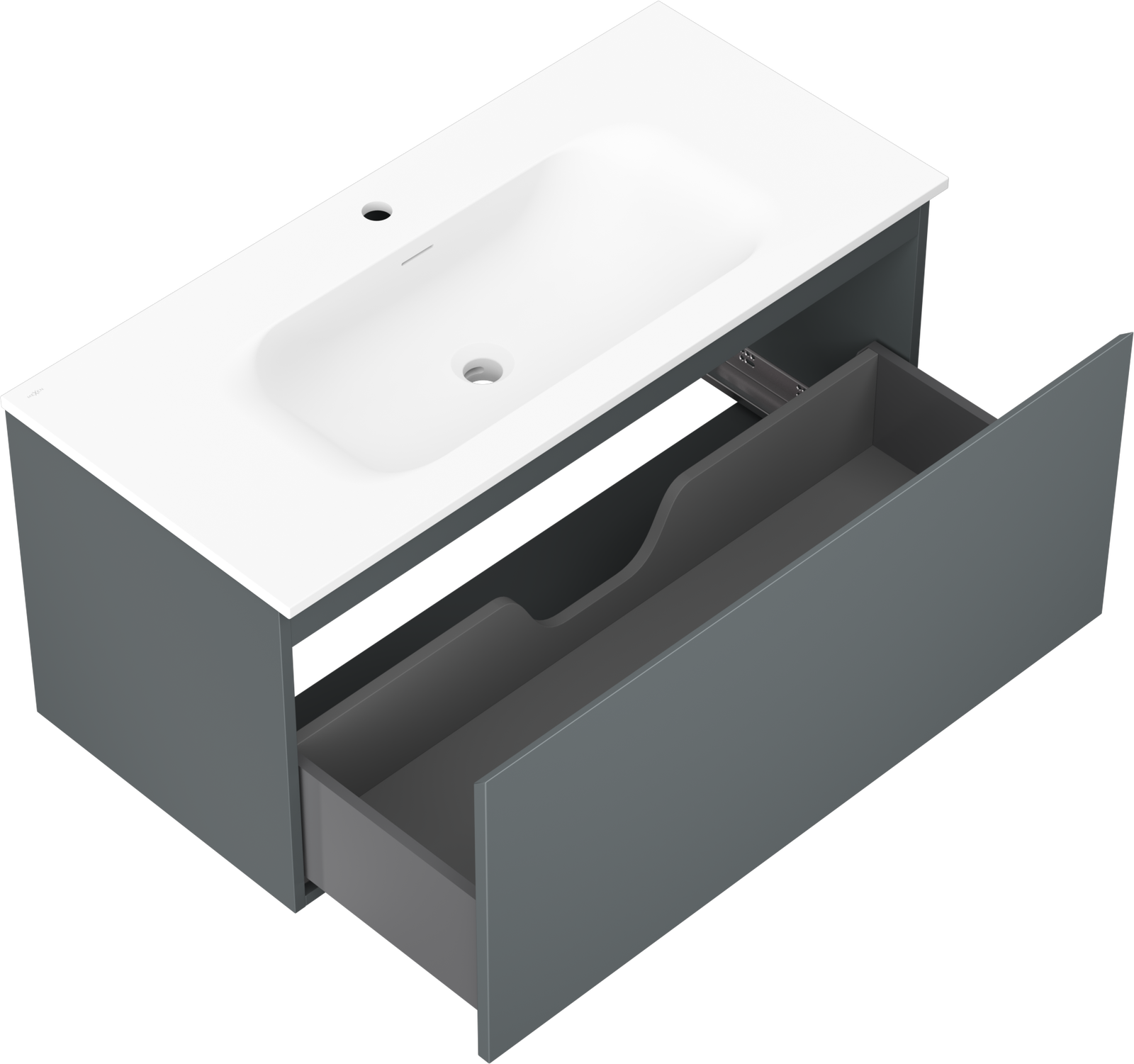 The cutout in the drawer is designed in such a way as to accommodate the siphon, which is essential in sink installations. This allows the furniture to be fully functional without having to give up drawer space for the installation.