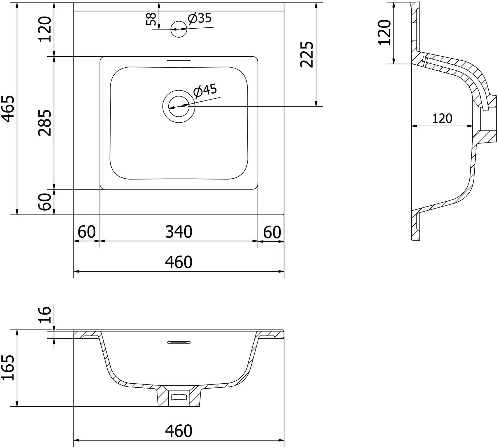 Sink dimensions: