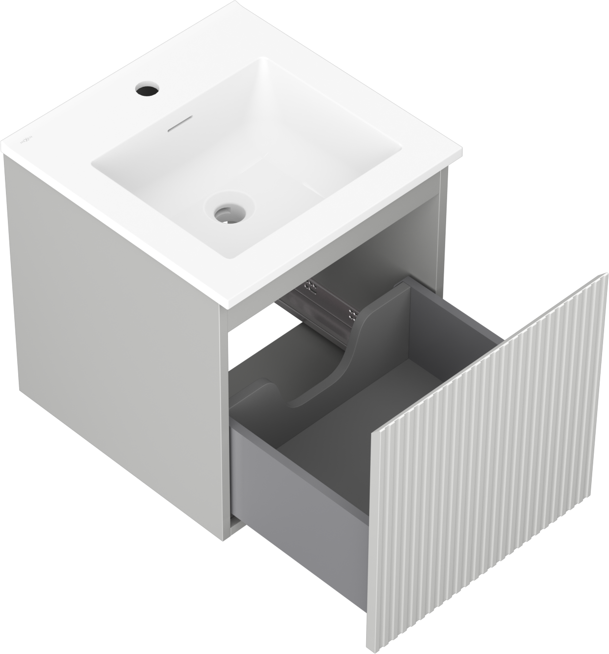Mexen Rivel bathroom cabinet 45 cm with Otis sink, 1 drawer, grooved, grey matte/white matte - 91A20-04547-1-BF62-W18M01