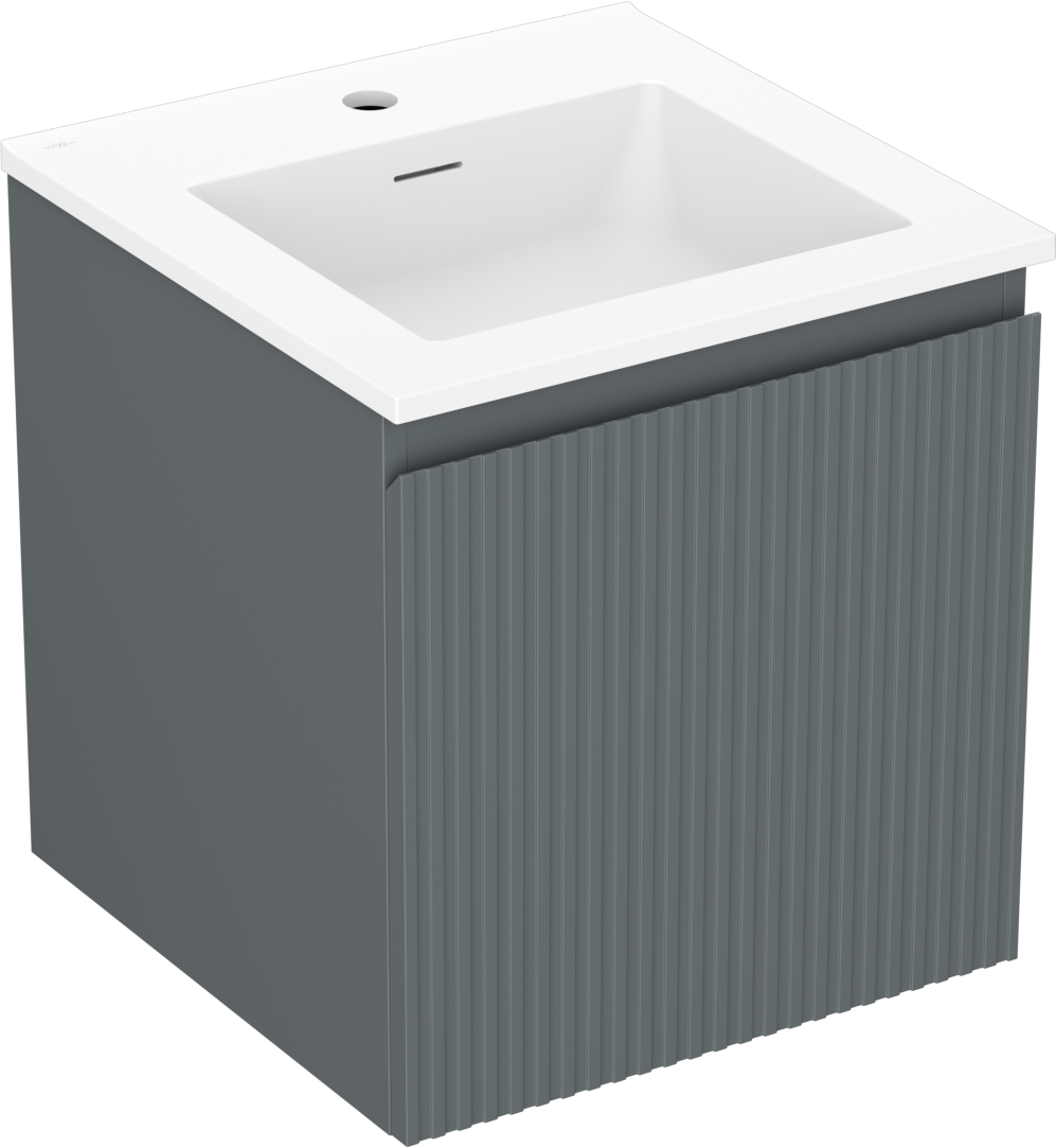 Mexen Rivel bathroom cabinet 45 cm with Otis sink, 1 drawer, grooved, graphite matte/white matte - 91A20-04547-1-BF66-W18M01