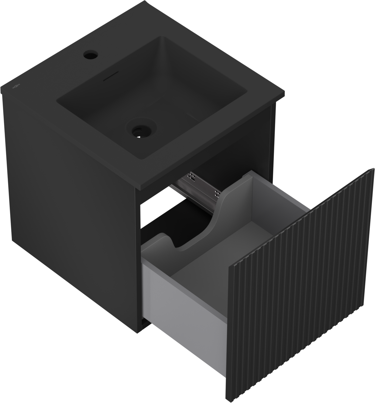 Mexen Rivel Bathroom Cabinet 45 cm with Otis Sink, 1 Drawer, Grooved, Black Matte - 91A20-04547-1-BF71-W18M71