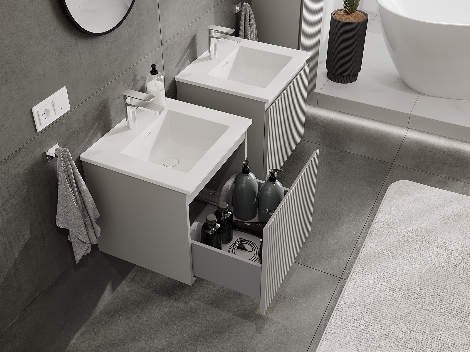 Mexen Rivel bathroom cabinet 50 cm with Otis sink, 1 drawer, grooved, grey matt/white matt - 91A20-05047-1-BF62-W18M01