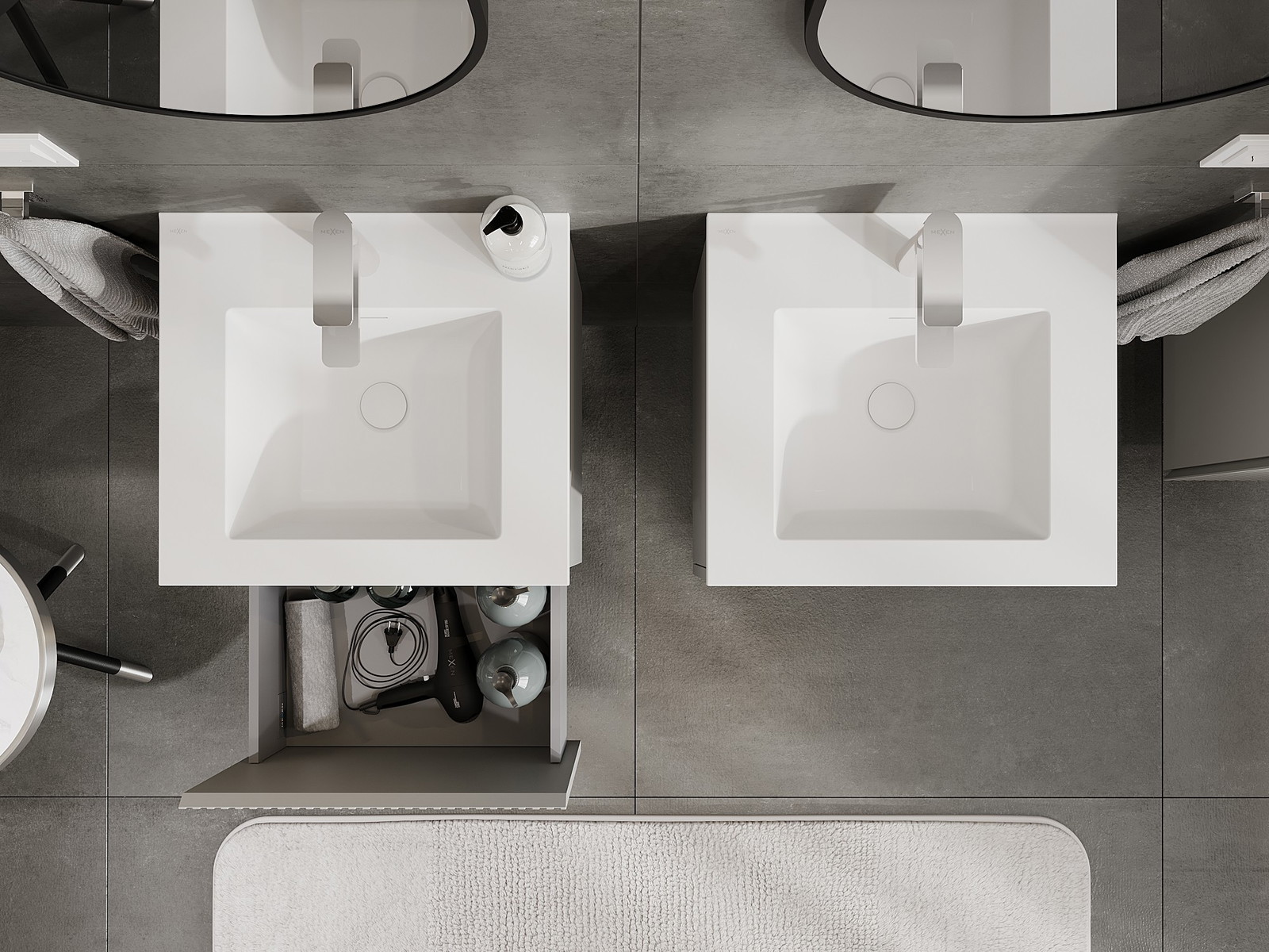 Our modular bathroom furniture can be combined in various colour configurations, allowing for complete personalisation. You can choose both the appearance and functions of individual elements, enabling you to adapt the furniture to your own stylistic and functional preferences.