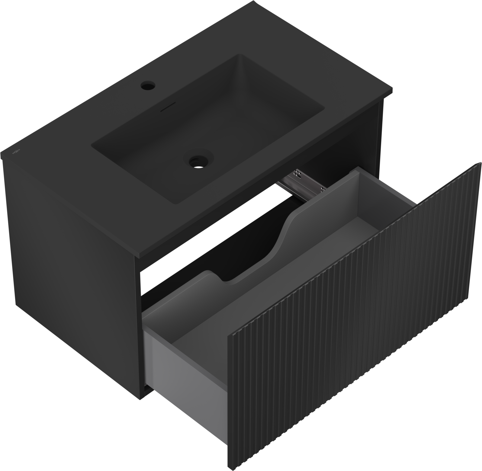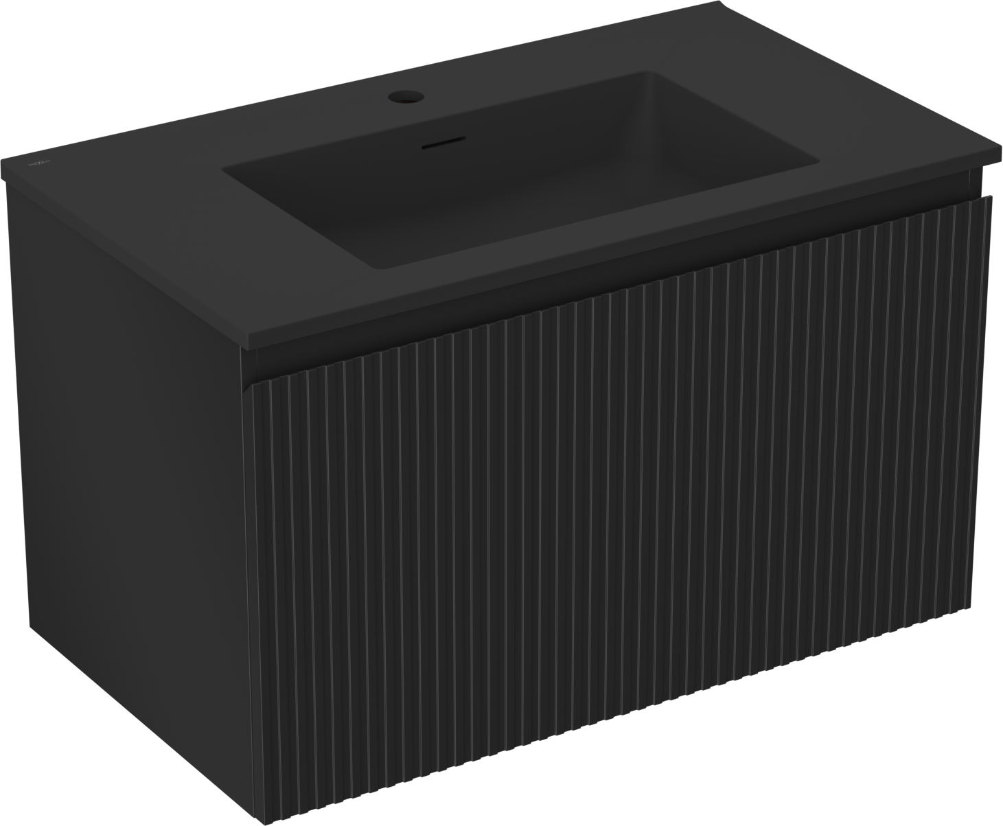 Mexen Rivel bathroom cabinet 80 cm with Otis sink, 1 drawer, fluted, black matt - 91A20-08047-1-BF71-W18M71
