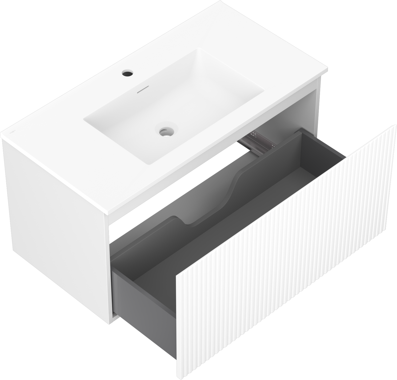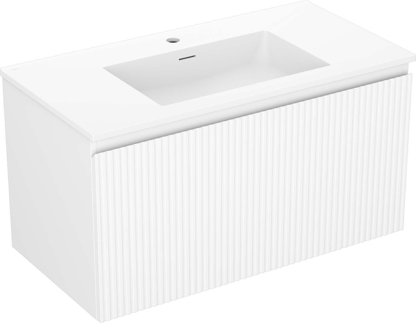 Mexen Rivel bathroom cabinet 90 cm with Otis washbasin, 1 drawer, grooved, white matte - 91A20-09047-1-BF01-W18M01