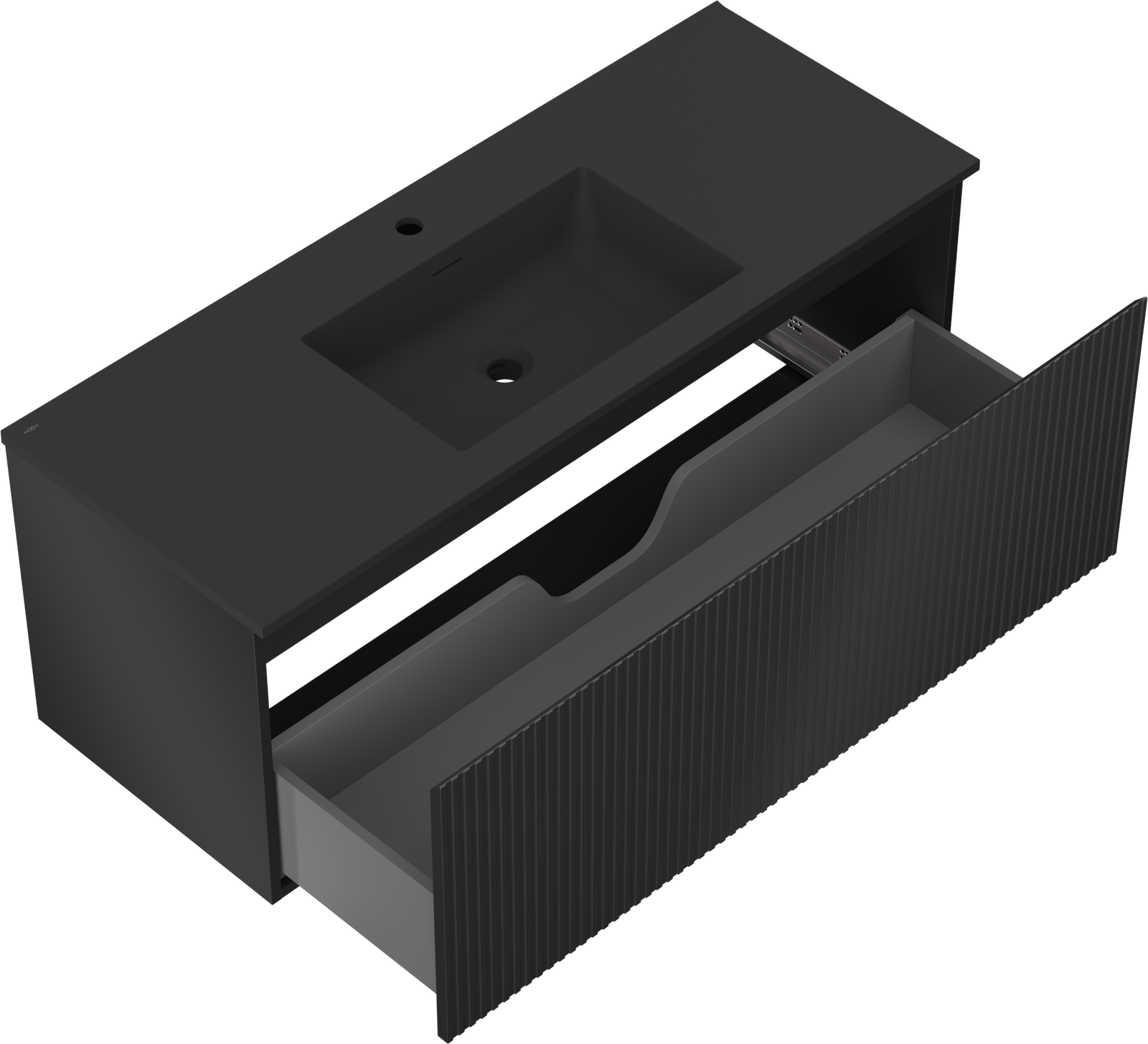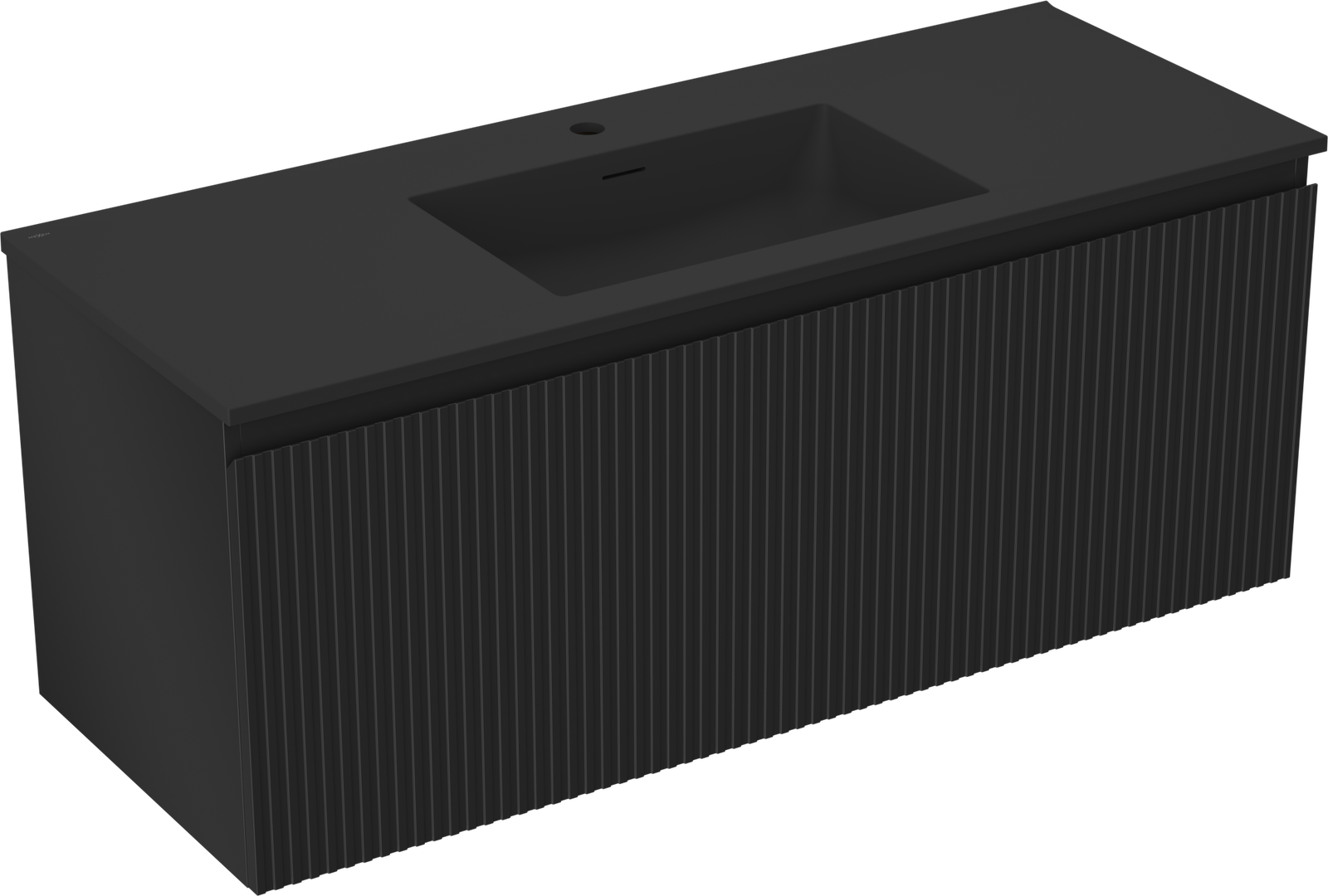 Mexen Rivel bathroom cabinet 120 cm with Otis washbasin, 1 drawer, fluted, black matt - 91A20-12047-1-BF71-W18M71