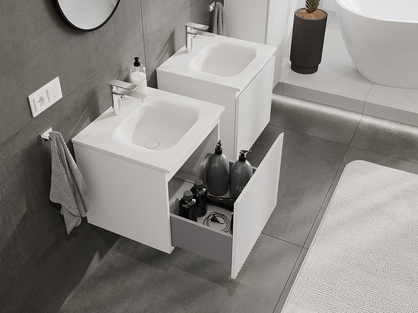 The cabinet carcass is delivered fully assembled, which means maximum convenience and time savings. You don't have to spend hours assembling the furniture – just install it in your chosen spot in the bathroom. This is an ideal solution for those who appreciate quick assembly and immediate results.