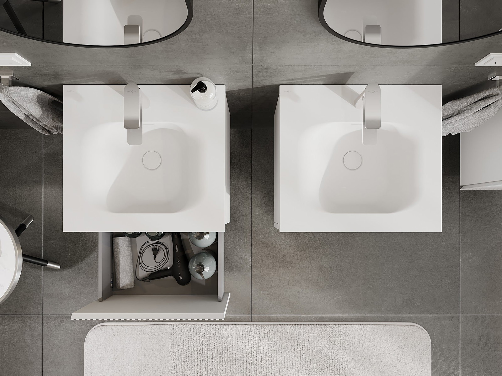 Our modular bathroom furniture can be combined in various colour configurations, allowing for complete personalisation. You can choose both the appearance and functions of individual elements, enabling you to adapt the furniture to your own stylistic and functional preferences.