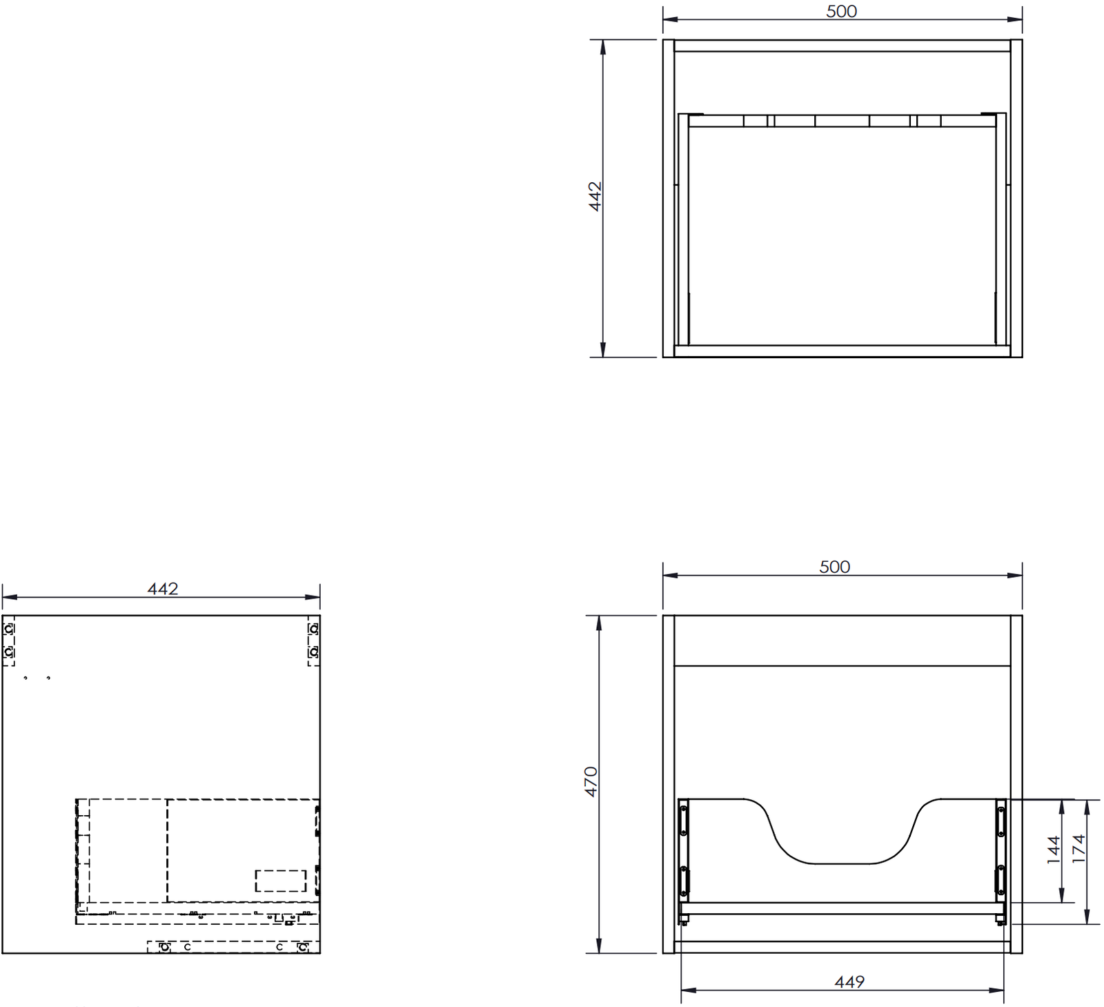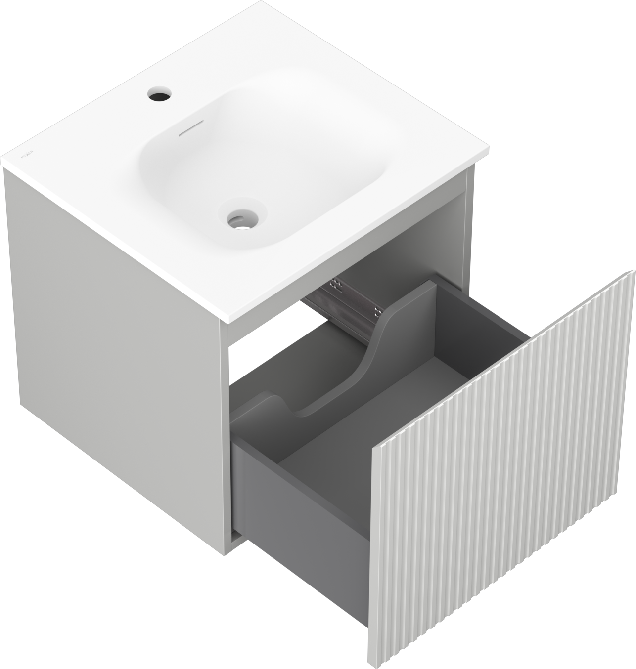 The cutout in the drawer is designed in such a way as to accommodate the siphon, which is essential in sink installations. This allows the furniture to be fully functional without having to give up drawer space for the installation.