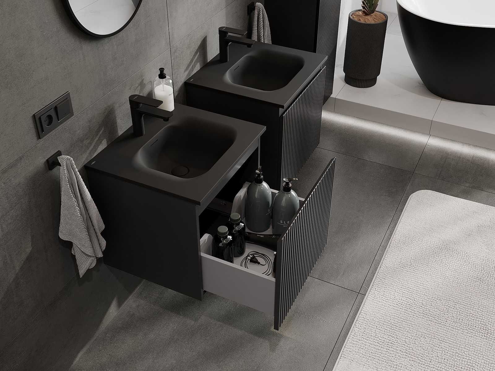 Our modular bathroom furniture can be combined in various colour configurations, allowing for complete personalisation. You can choose both the appearance and functions of individual elements, enabling you to adapt the furniture to your own stylistic and functional preferences.