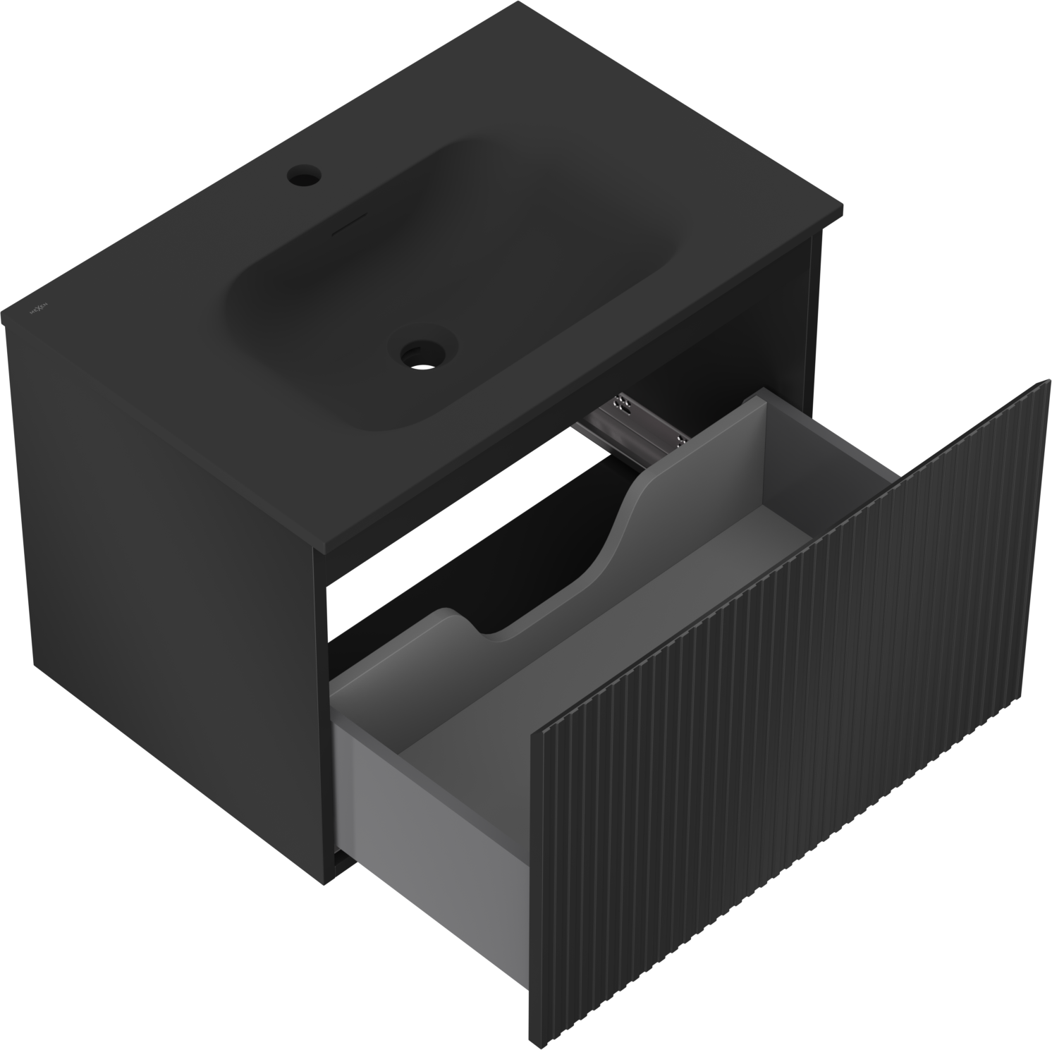 The cutout in the drawer is designed in such a way as to accommodate the siphon, which is essential in sink installations. This allows the furniture to be fully functional without having to give up drawer space for the installation.
