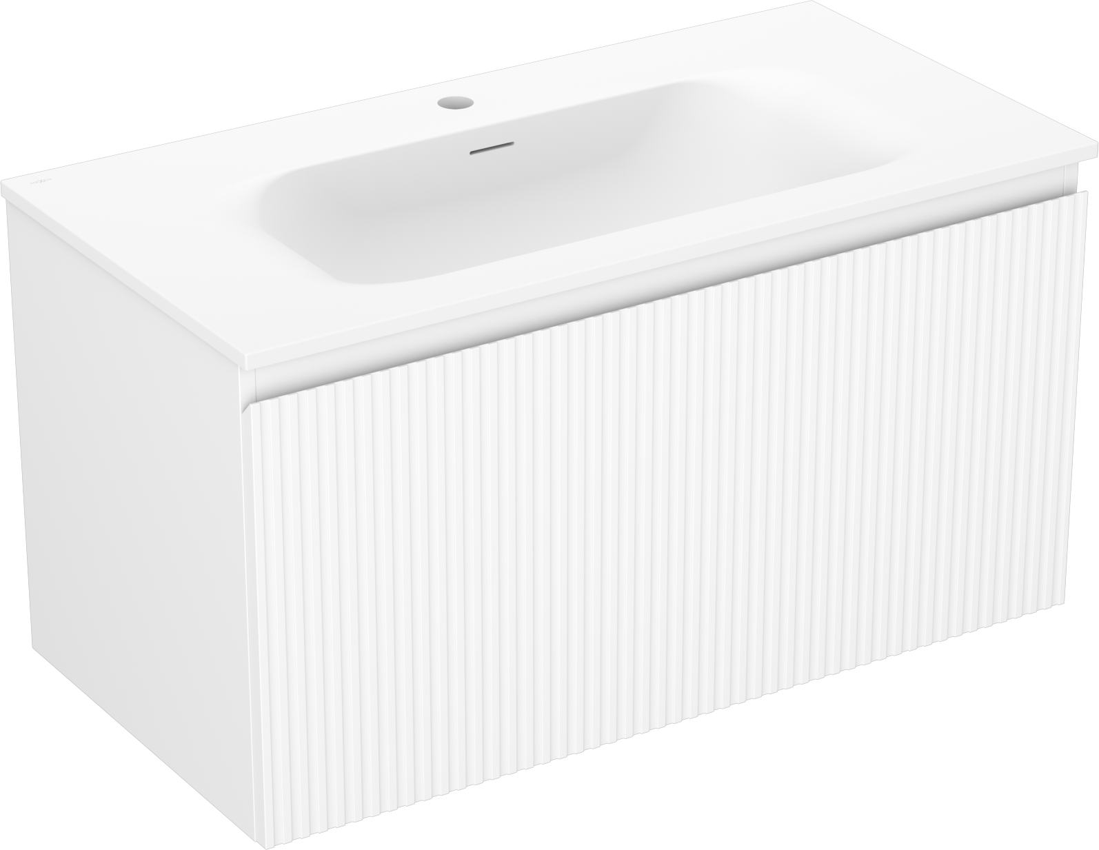 The washbasin has an opening where we can install a tap. This allows for saving valuable space in the bathroom and enhances its aesthetics. This solution also makes it easier to maintain cleanliness around the washbasin.