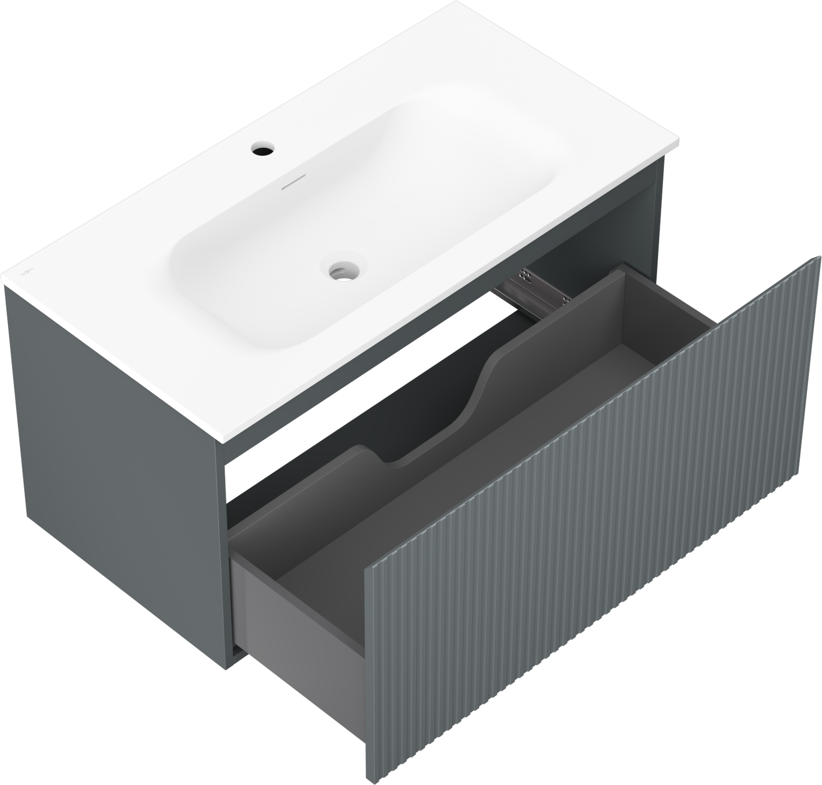 The cutout in the drawer is designed in such a way as to accommodate the siphon, which is essential in sink installations. This allows the furniture to be fully functional without having to give up drawer space for the installation.