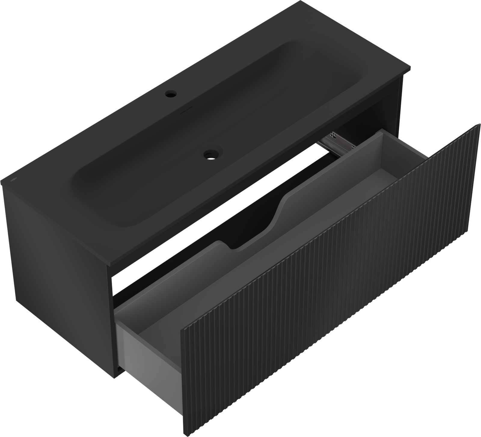 The cutout in the drawer is designed in such a way as to accommodate the siphon, which is essential in sink installations. This allows the furniture to be fully functional without having to give up drawer space for the installation.