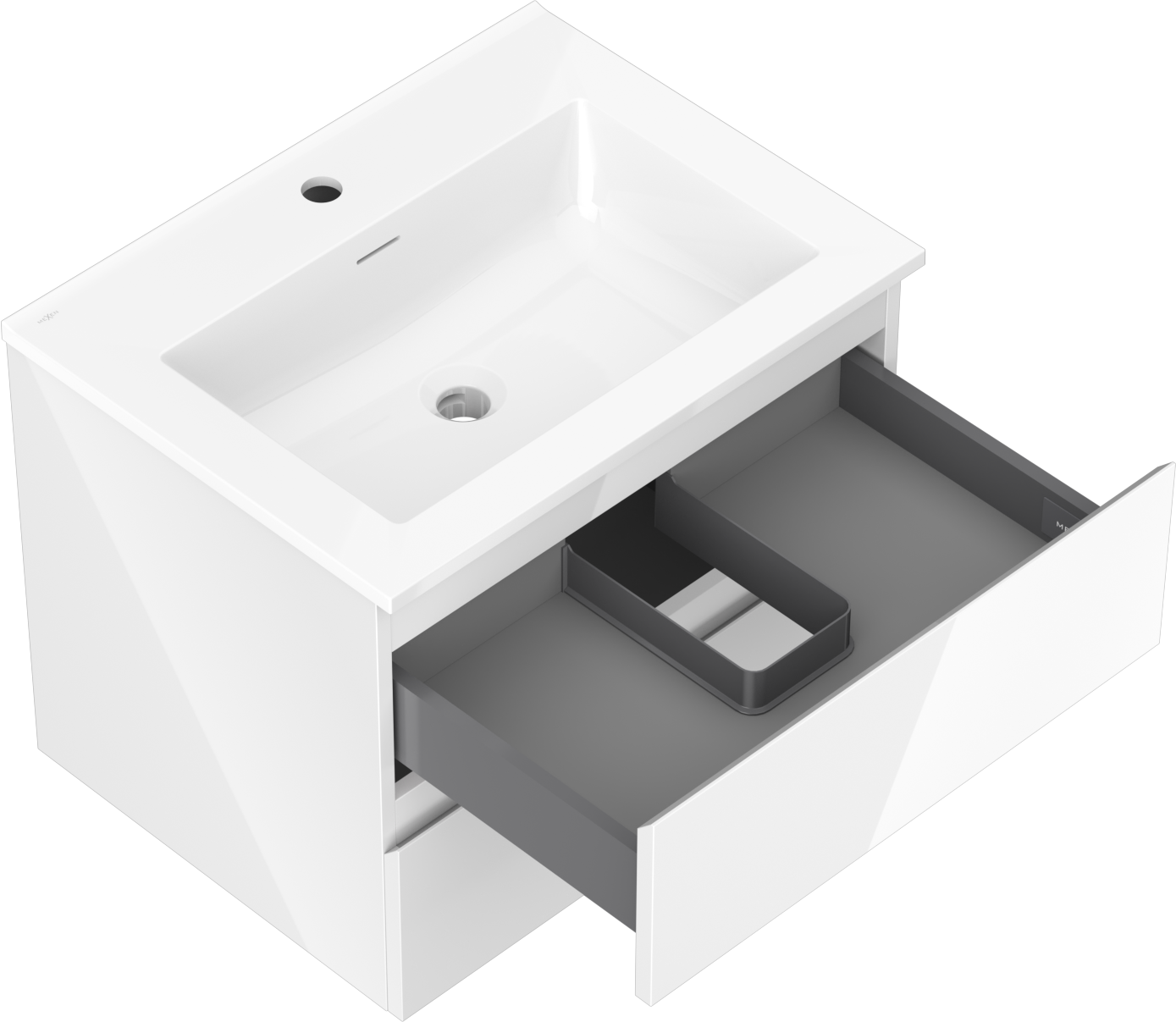 Mexen Orio bathroom cabinet 60 cm with Otis washbasin, 2 drawers, white gloss - 91A10-06047-2-BFF00-W18M00