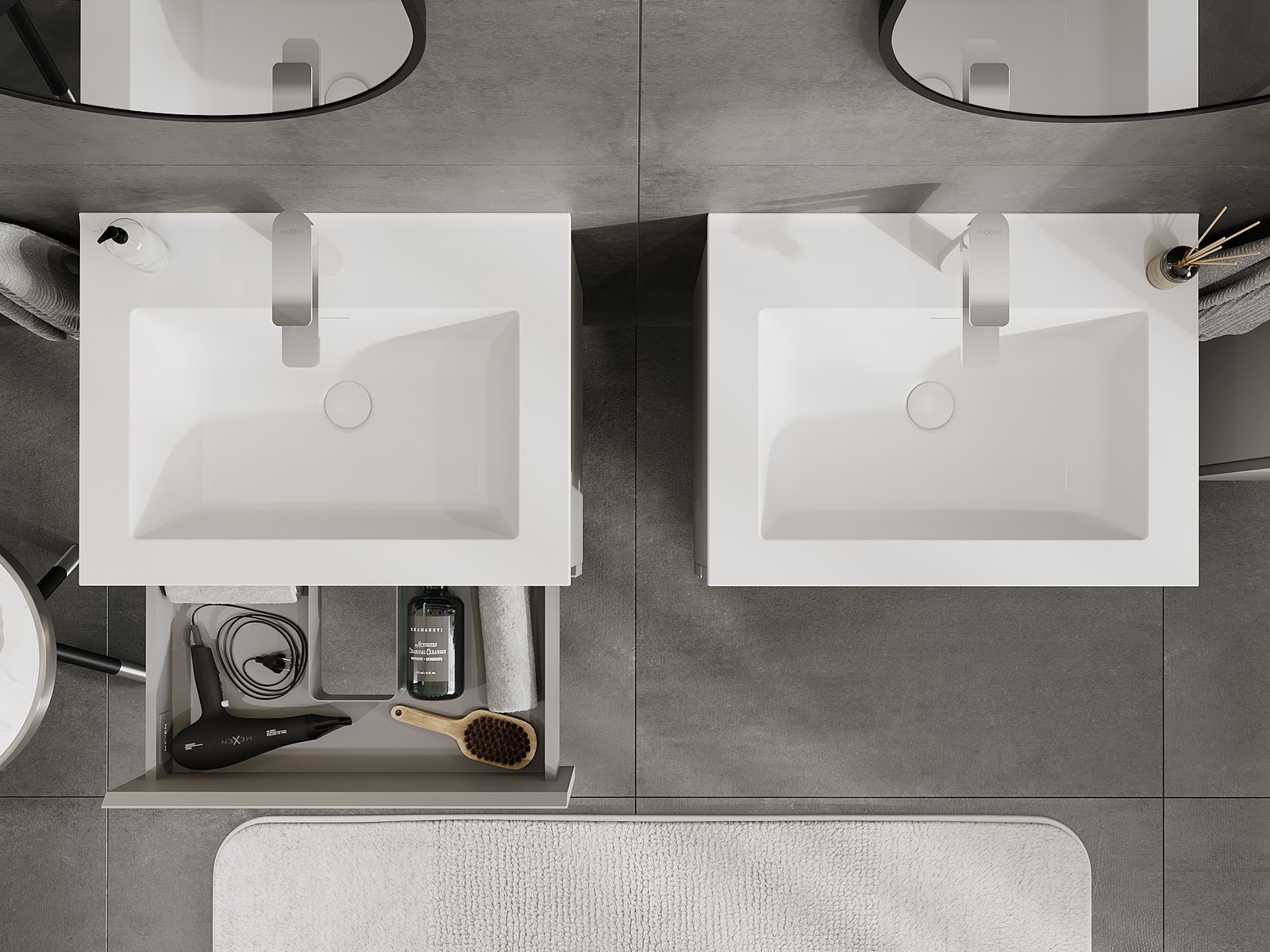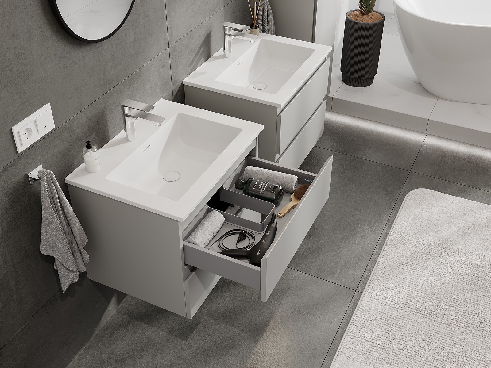 Our modular bathroom furniture can be combined in various colour configurations, allowing for complete personalisation. You can choose both the appearance and functions of individual elements, enabling you to adapt the furniture to your own stylistic and functional preferences.