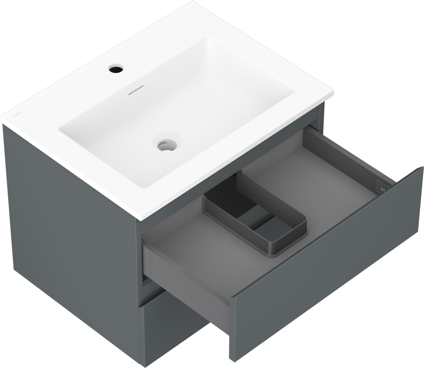 Mexen Orio bathroom cabinet 60 cm with Otis washbasin, 2 drawers, graphite matte/white matte - 91A10-06047-2-BFF66-W18M01