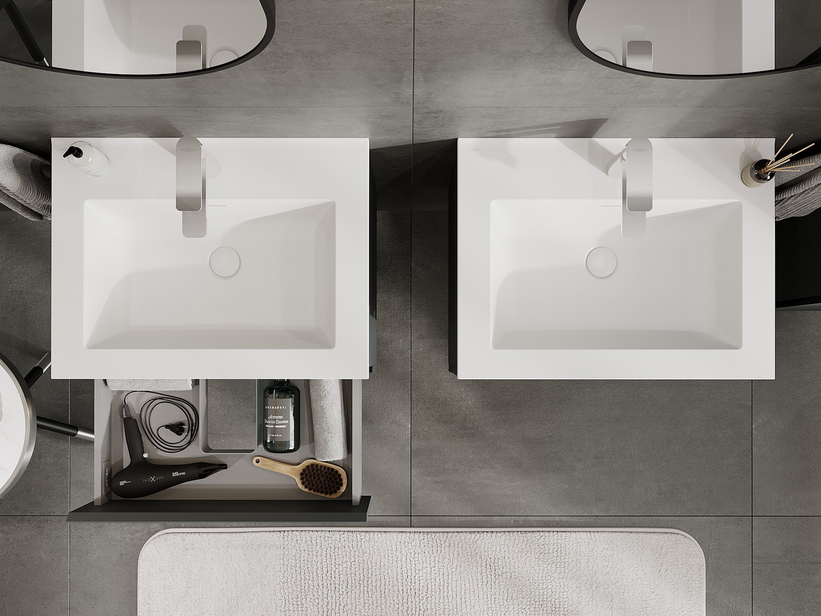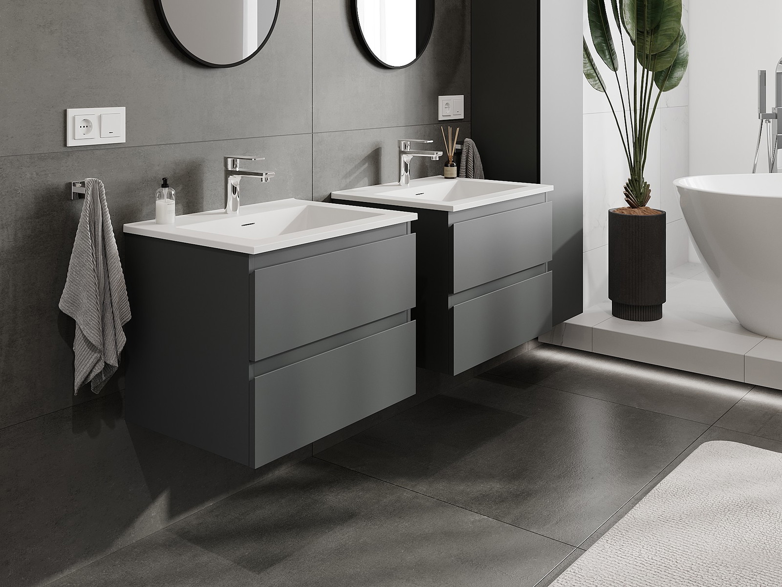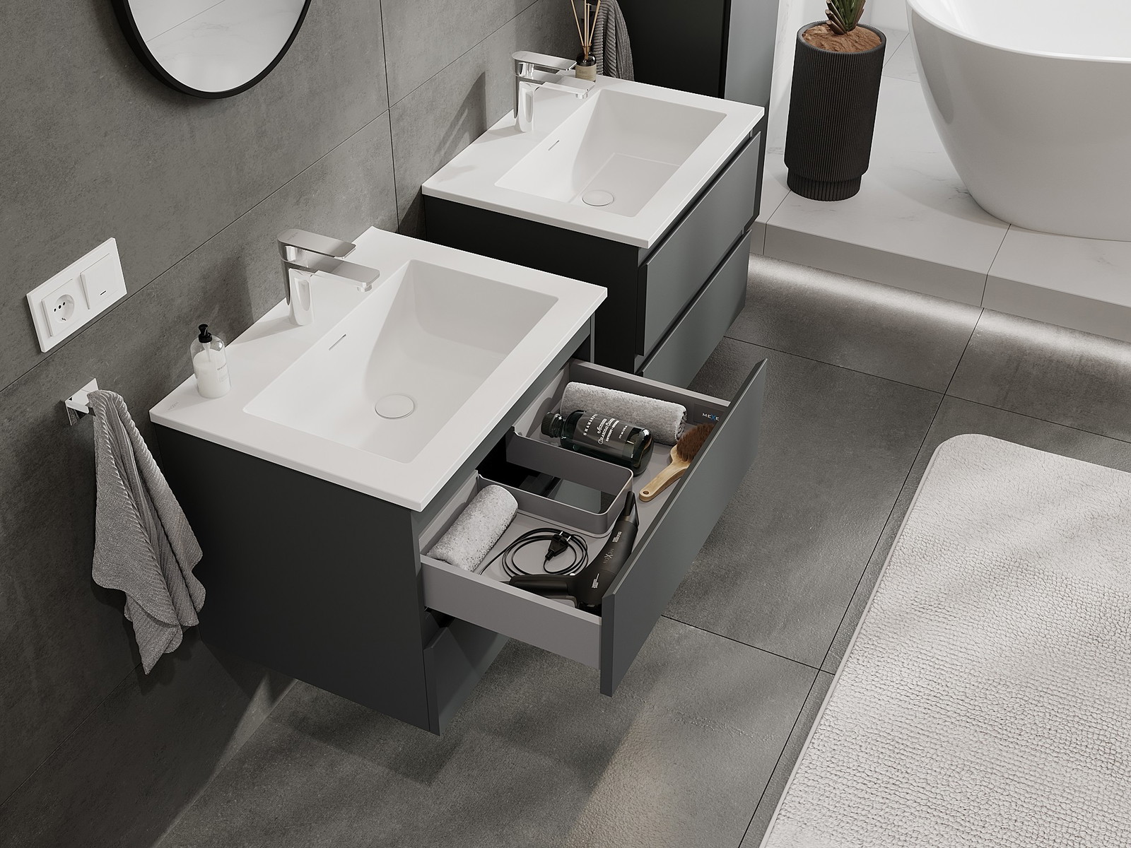 Our modular bathroom furniture can be combined in various colour configurations, allowing for complete personalisation. You can choose both the appearance and functions of individual elements, enabling you to adapt the furniture to your own stylistic and functional preferences.