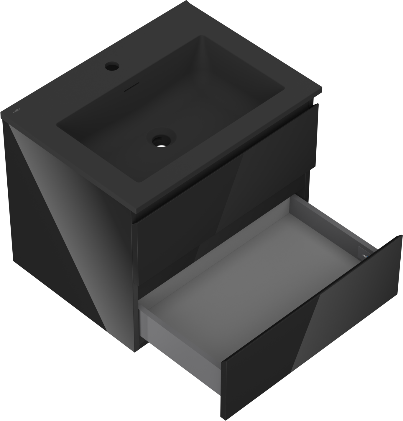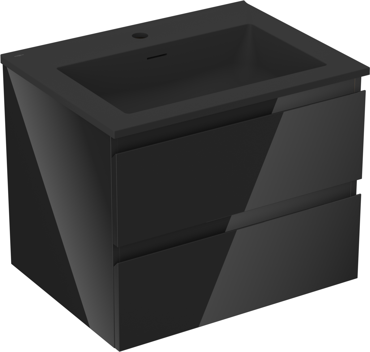 Mexen Orio bathroom cabinet 60 cm with Otis washbasin, 2 drawers, black gloss/matt black - 91A10-06047-2-BFF70-W18M71