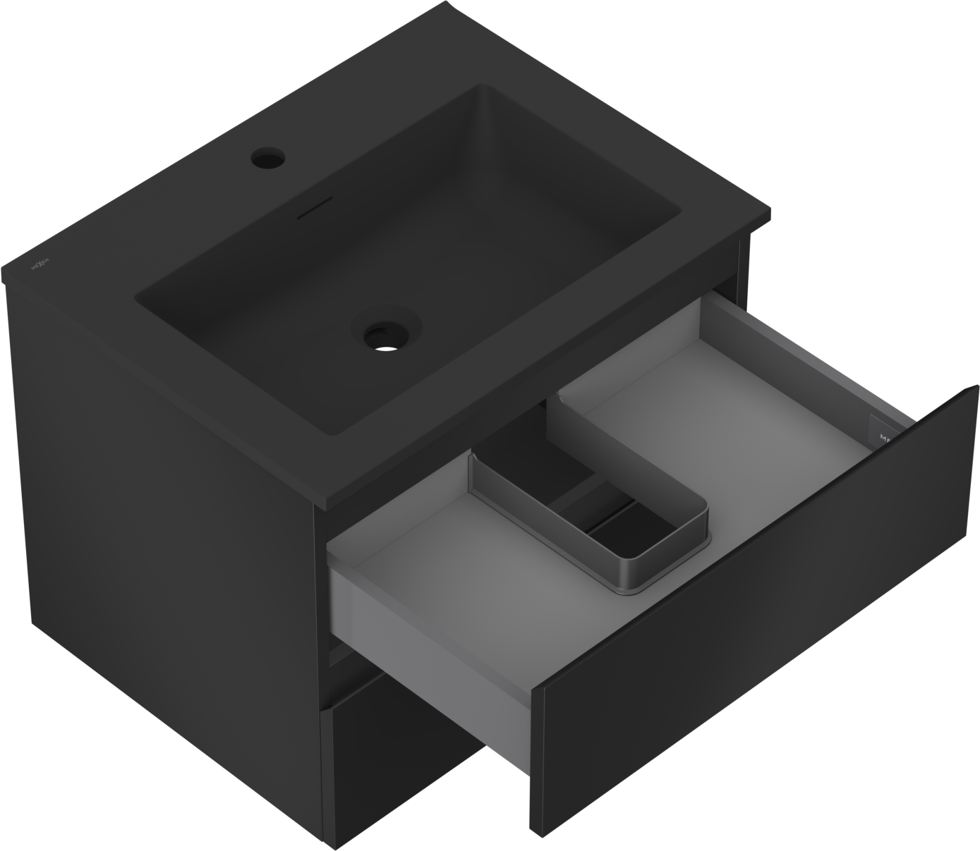 The cutout in the drawer is designed in such a way as to accommodate the siphon, which is essential in sink installations. This allows the furniture to be fully functional without having to give up drawer space for the installation.