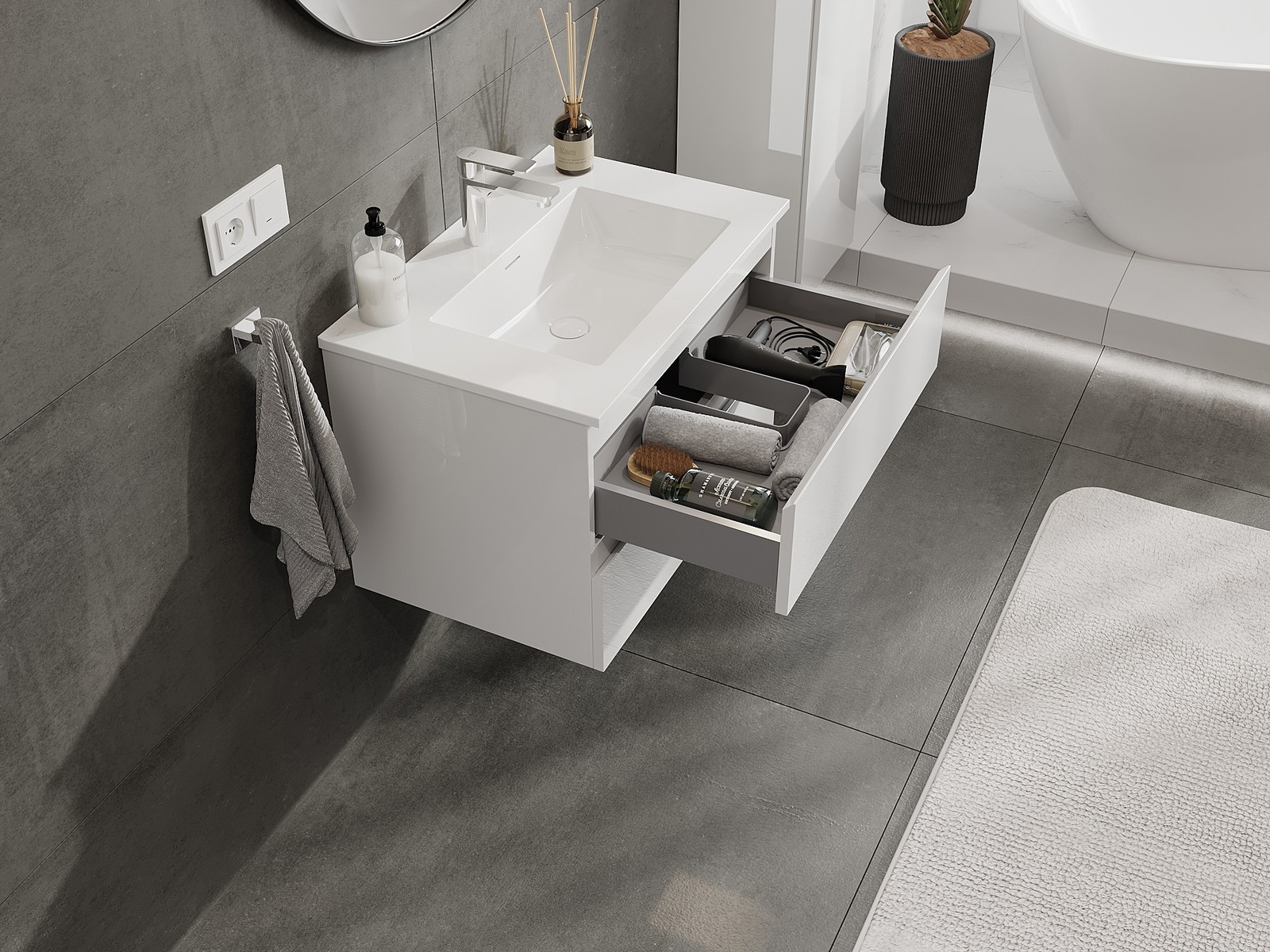 The cabinet carcass is delivered fully assembled, which means maximum convenience and time savings. You don't have to spend hours assembling the furniture – just install it in your chosen spot in the bathroom. This is an ideal solution for those who appreciate quick assembly and immediate results.