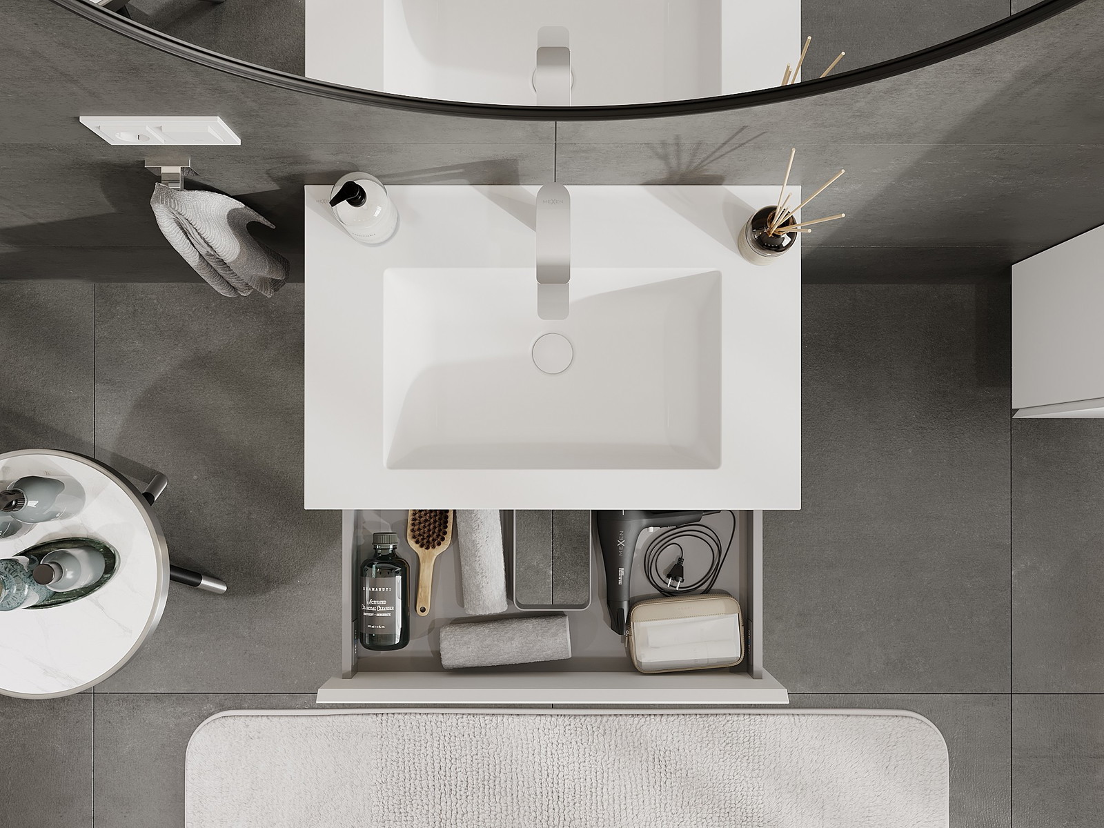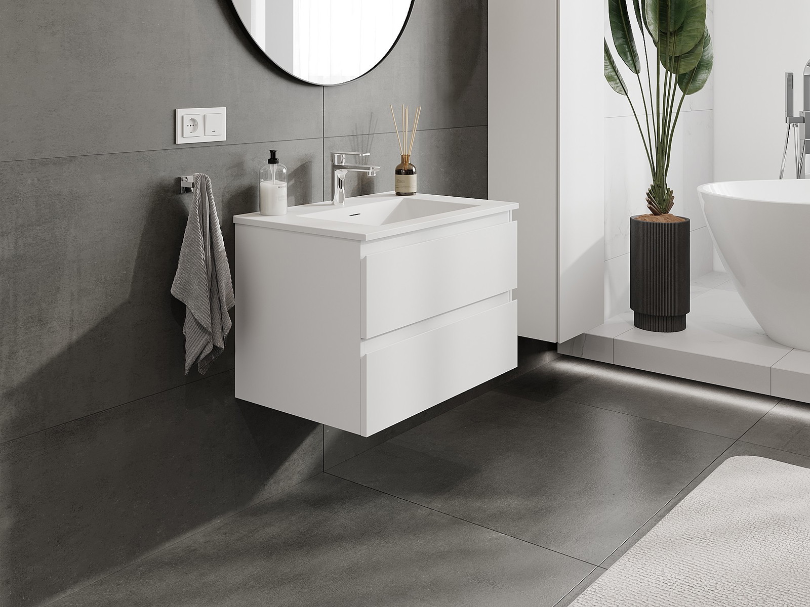 Our modular bathroom furniture can be combined in various colour configurations, allowing for complete personalisation. You can choose both the appearance and functions of individual elements, enabling you to adapt the furniture to your own stylistic and functional preferences.